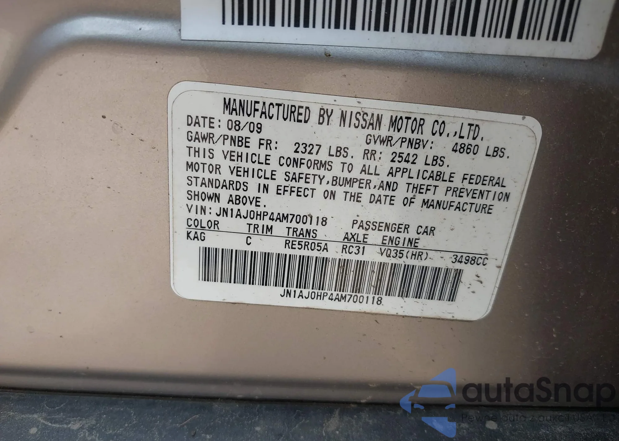 VIN: JN1AJ0HP4AM700118