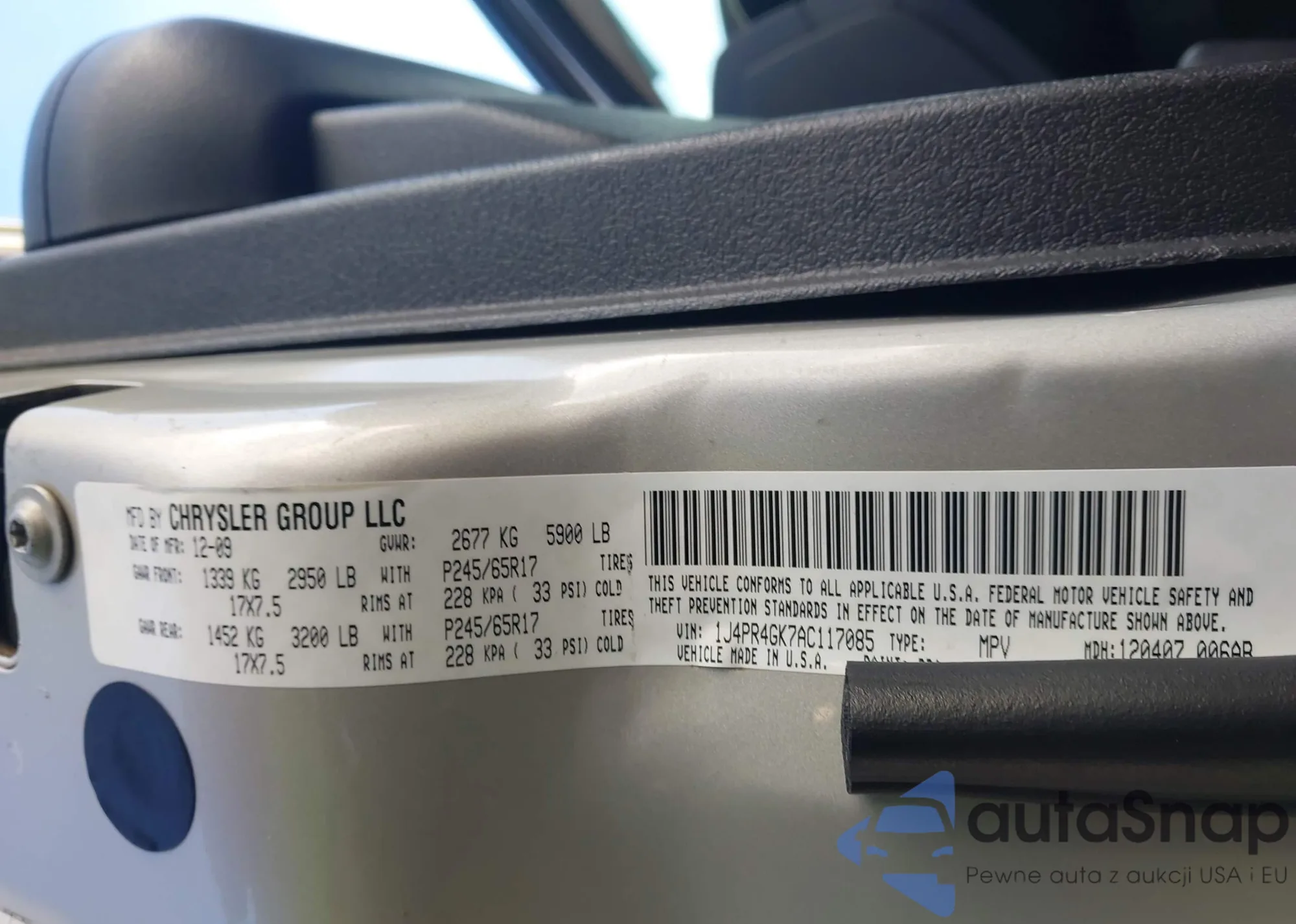 VIN: 1J4PR4GK7AC117085