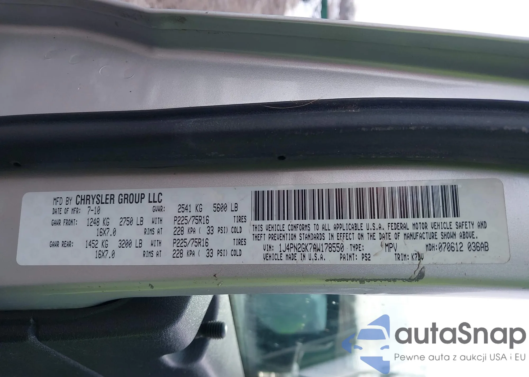 Samochód Jeep Liberty (North America) 2010 (VIN 1J4PN2GK7AW178550) nie był wcześniej licytowany. Dokumenty są czyste, przebieg odpowiada lub jest niższy niż średnia rynku. Sprzedaje go firma ubezpieczeniowa – polecamy zakup. Dostawa do portu zajmie ok. 6–8 tygodni.
