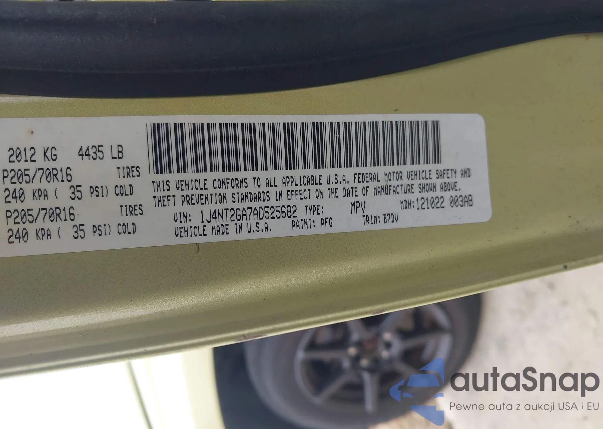 • VIN: 1J4NT2GA7AD525682