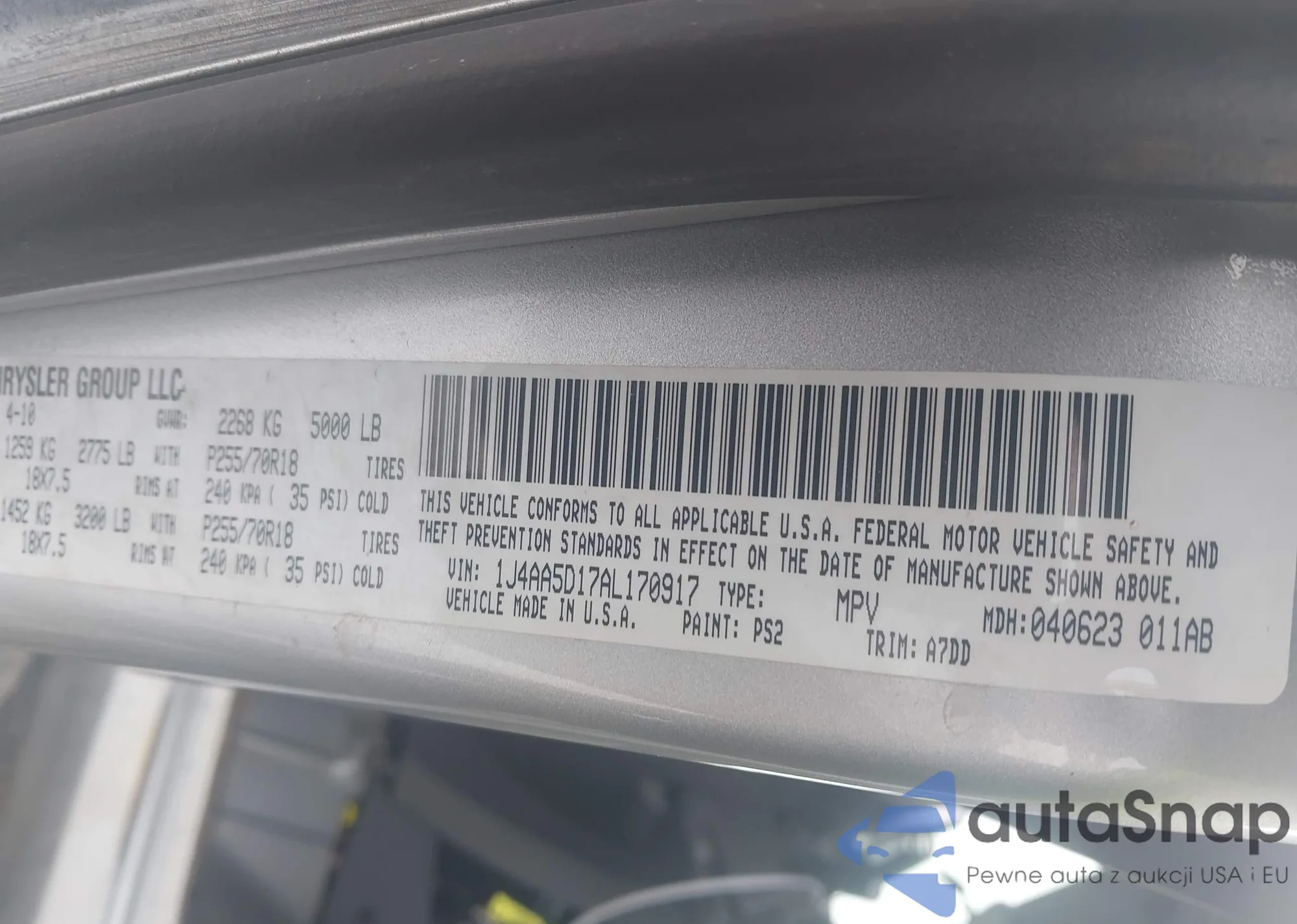 Samochód Jeep Wrangler 2010 (VIN 1J4AA5D17AL170917) nie był wcześniej licytowany. Dokumenty są czyste, przebieg odpowiada lub jest niższy niż średnia rynku. Sprzedaje go firma ubezpieczeniowa – polecamy zakup. Dostawa do portu zajmie ok. 6–8 tygodni.