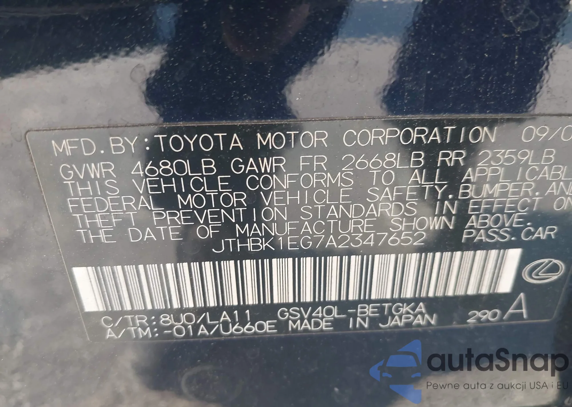 Lexus ES 2010 – Historia pojazdu (sprzedany na IAAI)