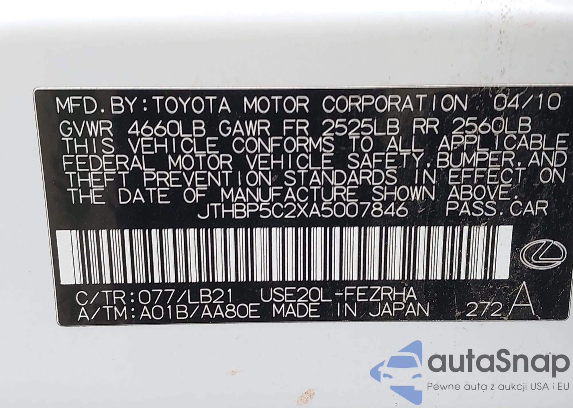 VIN: JTHBP5C2XA5007846