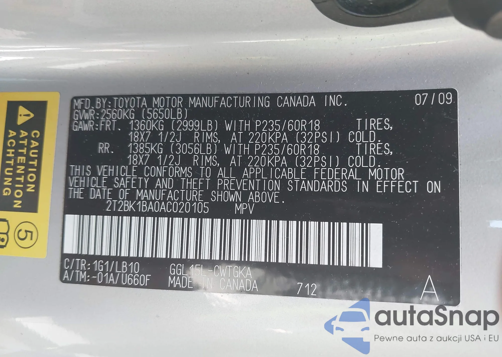 VIN: 2T2BK1BA0AC020105