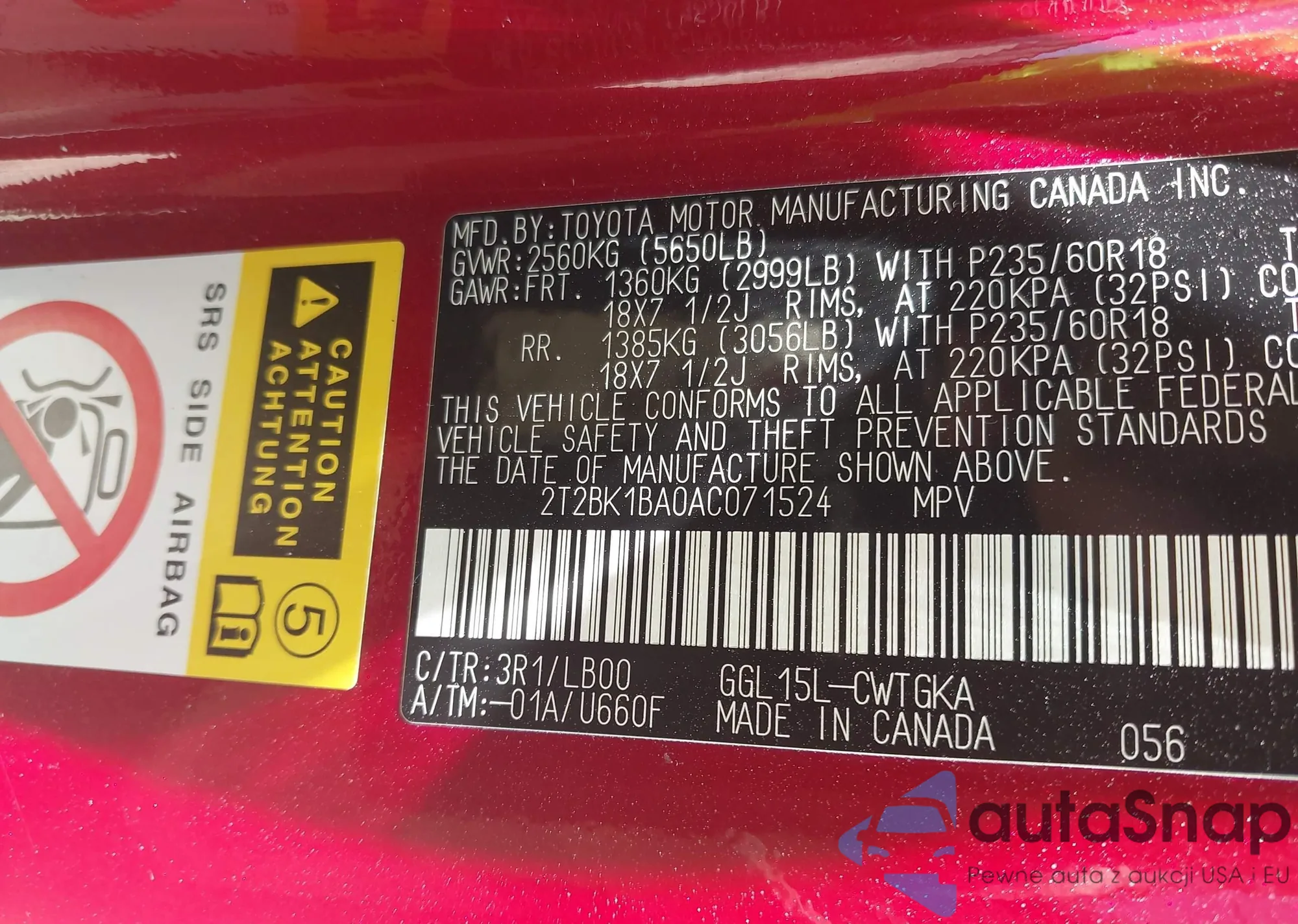VIN: 2T2BK1BA0AC071524