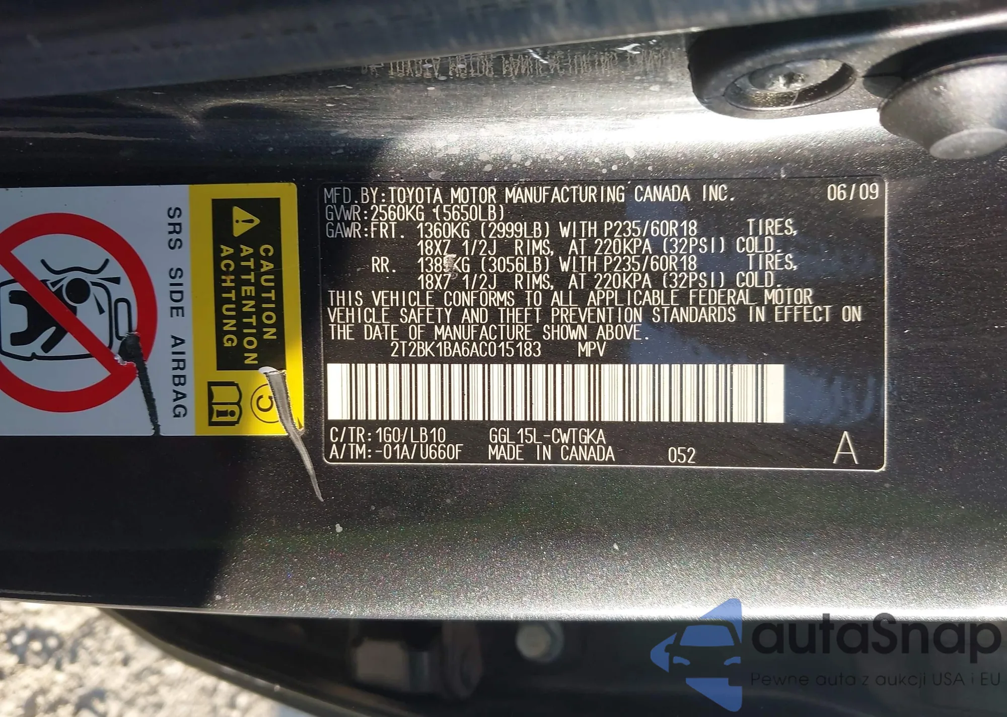 VIN: 2T2BK1BA6AC015183