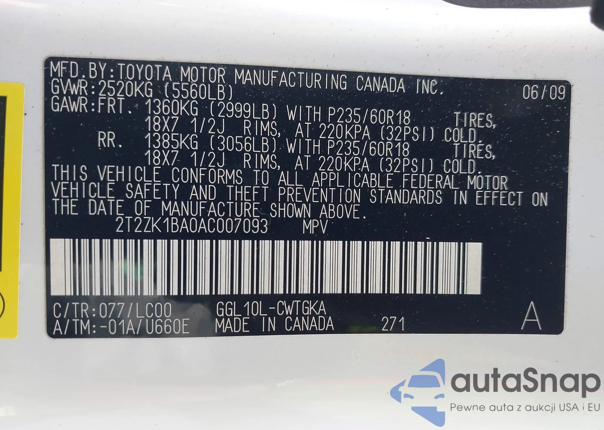 Samochód Lexus RX 2010 (VIN 2T2ZK1BA0AC007093) nie był wcześniej licytowany. Dokumenty są czyste, przebieg odpowiada lub jest niższy niż średnia rynku. Sprzedaje go firma ubezpieczeniowa – polecamy zakup. Dostawa do portu zajmie ok. 6–8 tygodni.