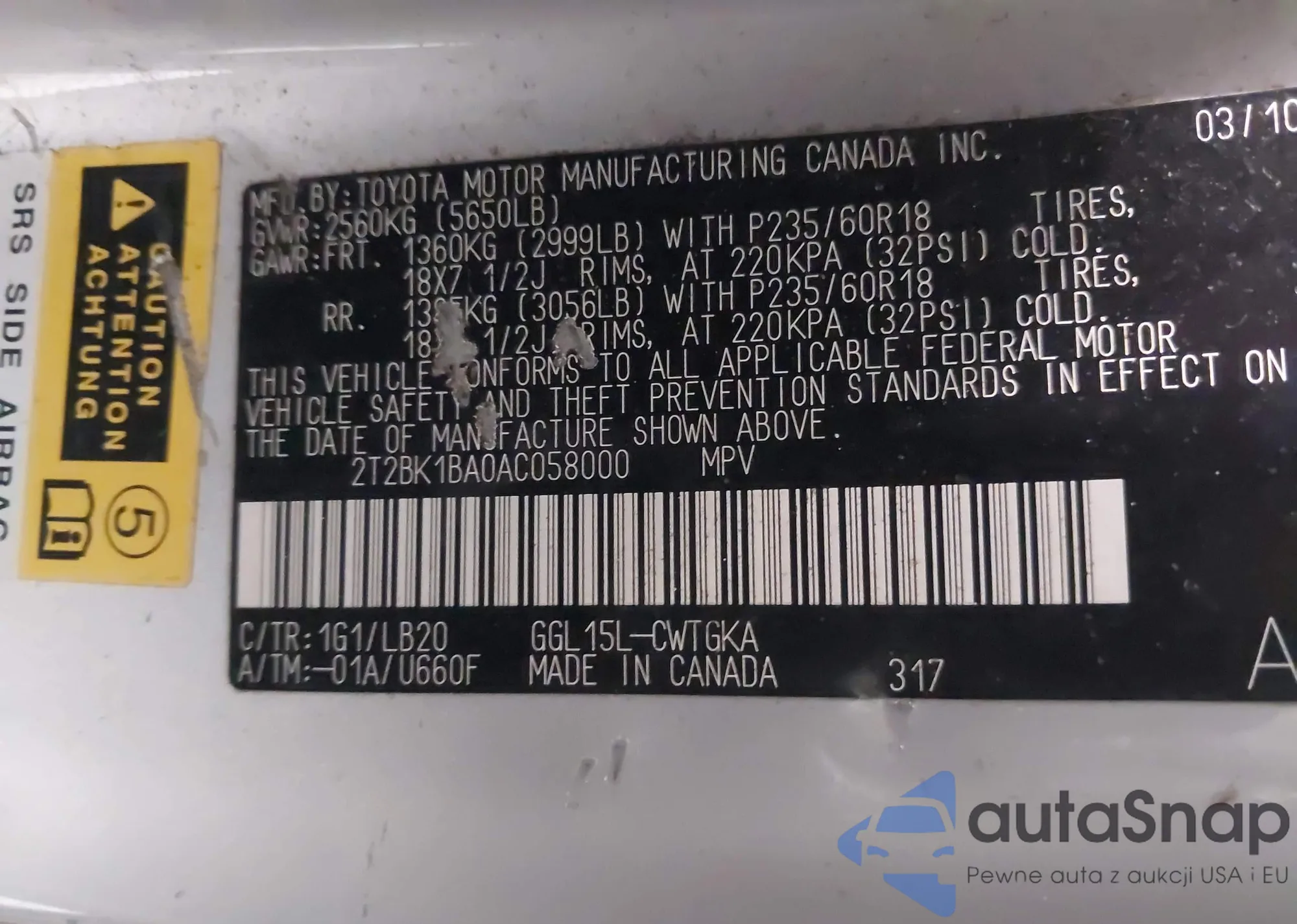 VIN: 2T2BK1BA0AC058000