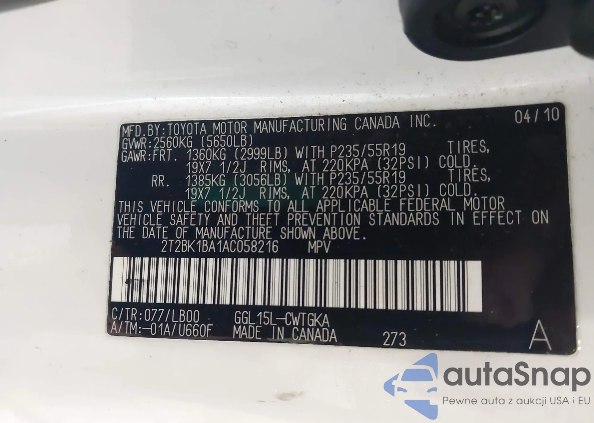 Samochód Lexus RX 2010 (VIN 2T2BK1BA1AC058216) nie był wcześniej licytowany. Dokumenty są czyste, przebieg odpowiada lub jest niższy niż średnia rynku. Sprzedaje go firma ubezpieczeniowa – polecamy zakup. Dostawa do portu zajmie ok. 6–8 tygodni.