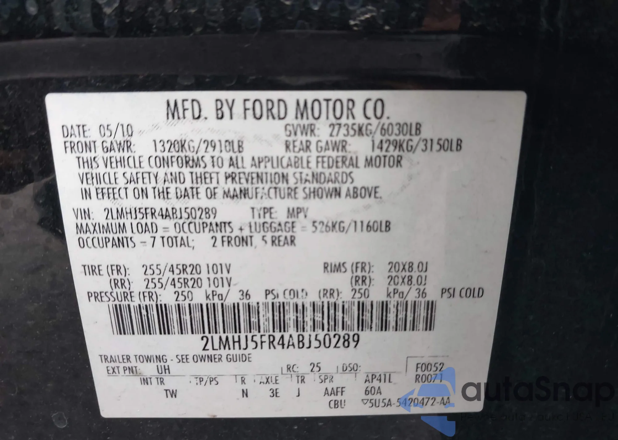 VIN: 2LMHJ5FR4ABJ50289