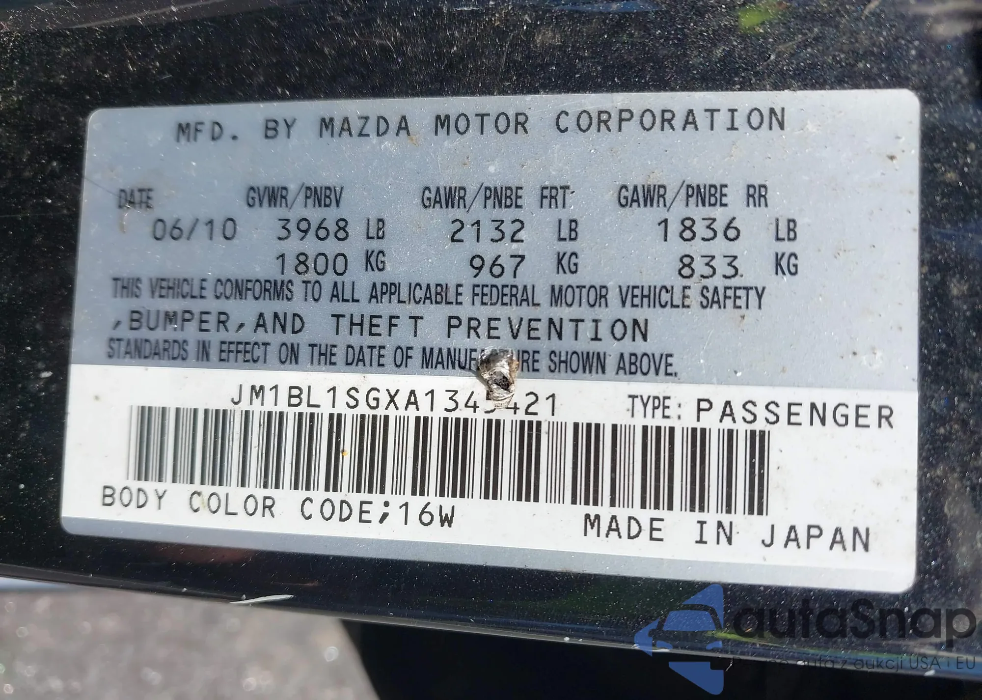 VIN: JM1BL1SGXA1345421
