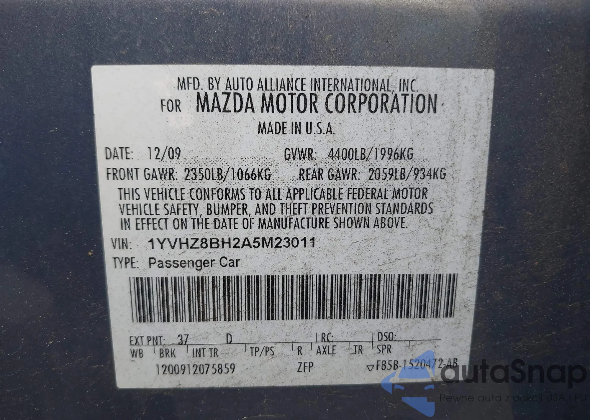 VIN: 1YVHZ8BH2A5M23011