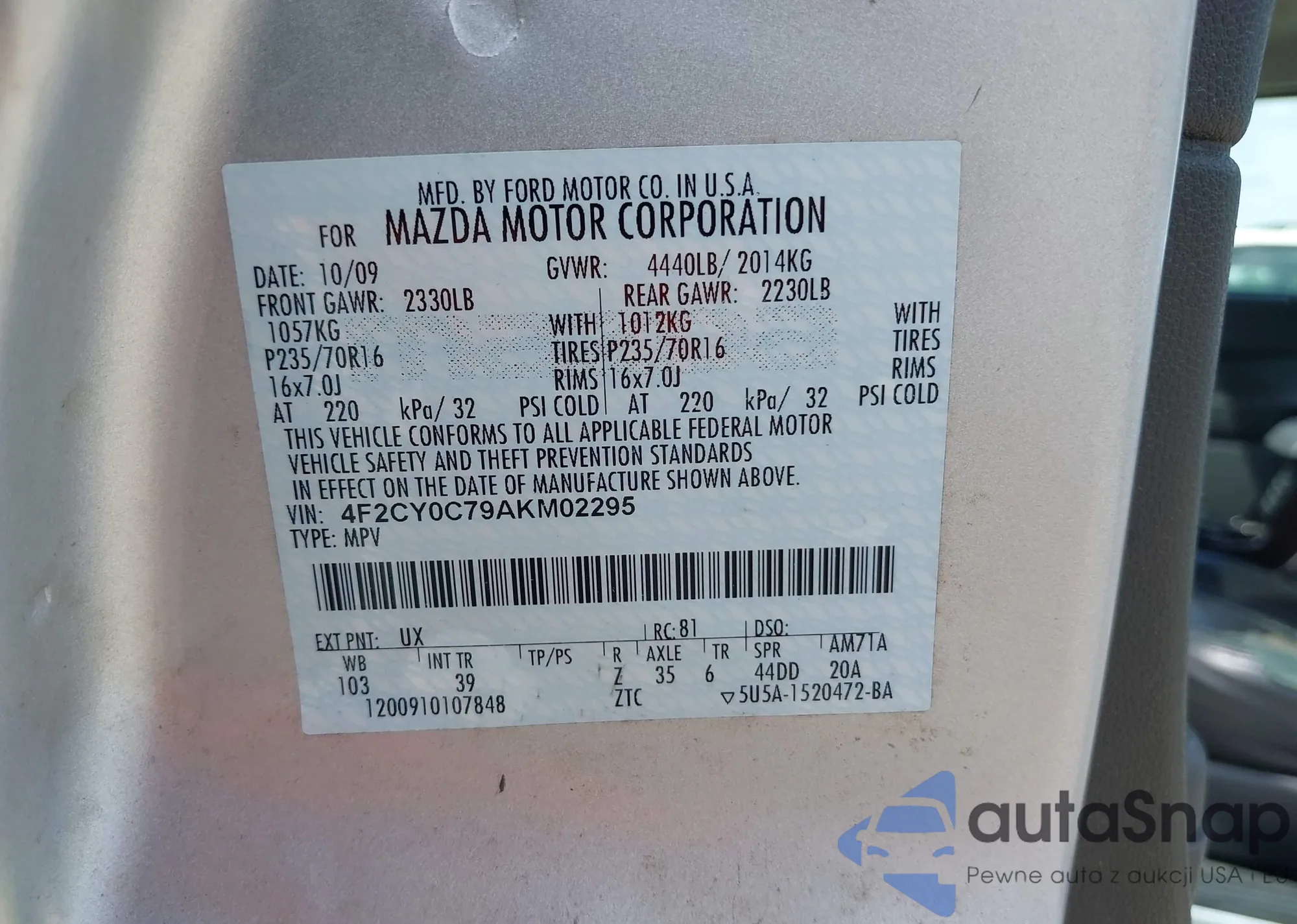 VIN: 4F2CY0C79AKM02295