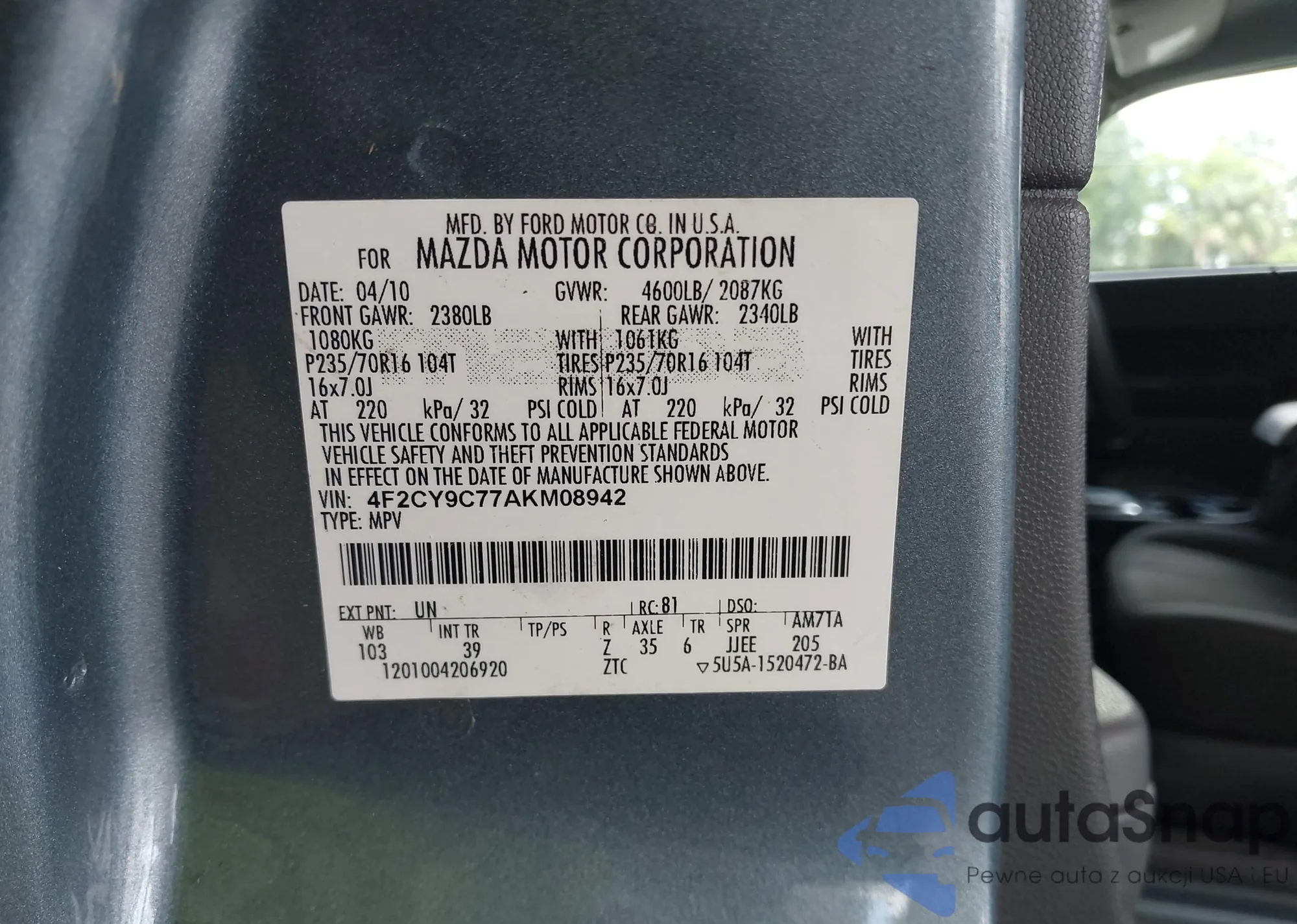 VIN: 4F2CY9C77AKM08942