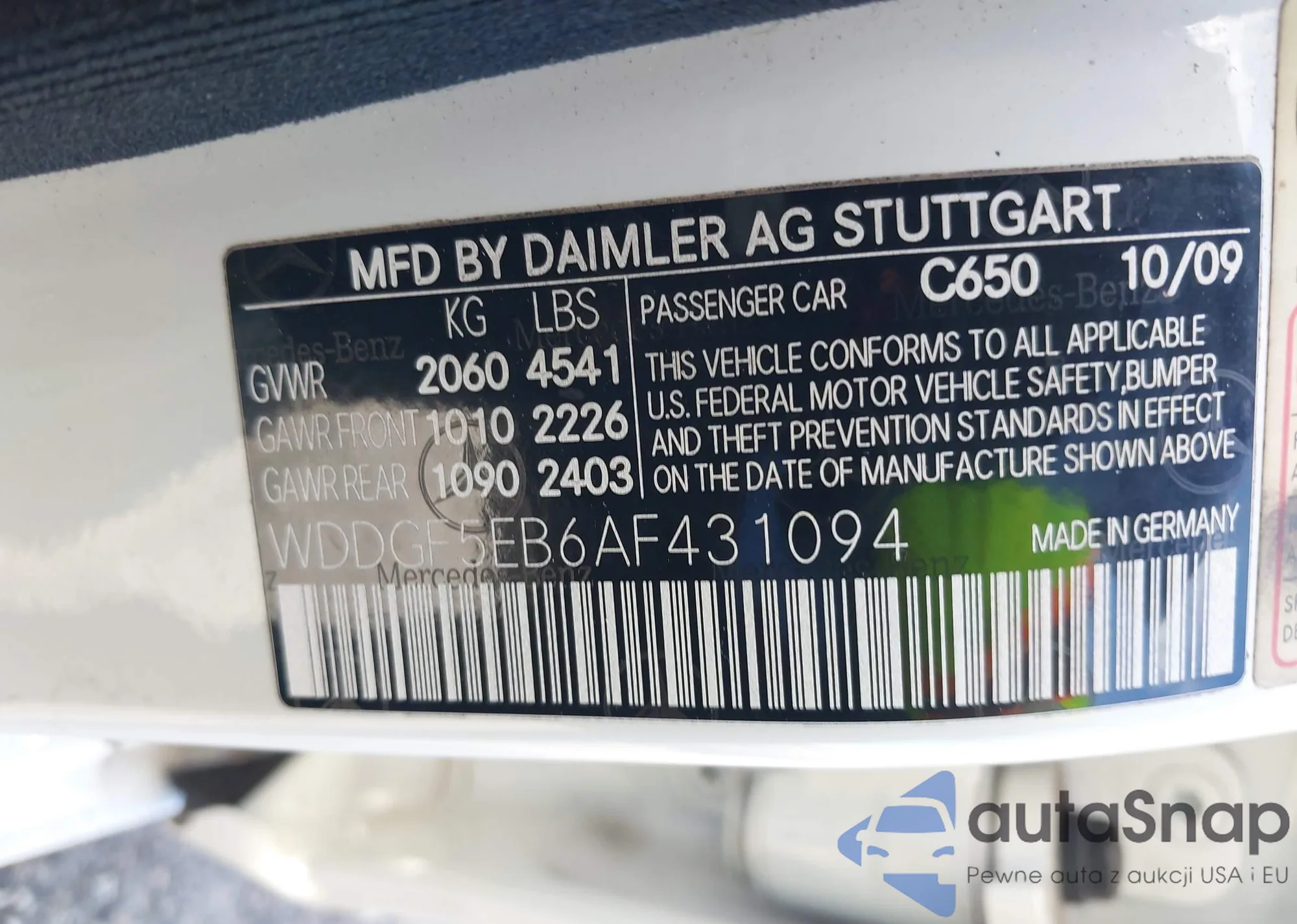 • VIN: WDDGF5EB6AF431094