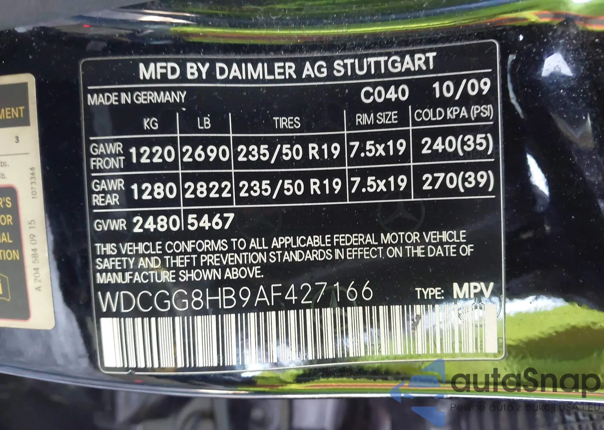 VIN: WDCGG8HB9AF427166