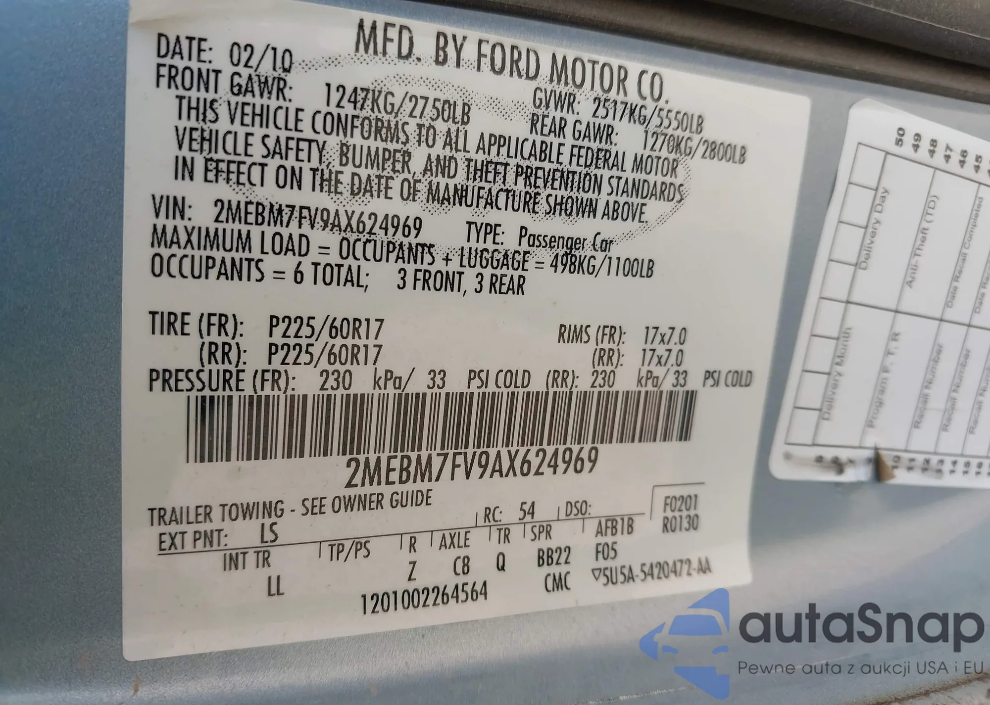 Samochód Mercury Grand Marquis 2010 (VIN 2MEBM7FV9AX624969) był już licytowany 1 razy i/lub sprzedaje go niezweryfikowany sprzedawca. Zalecamy raport Carfax i potwierdzenie możliwości rejestracji pojazdu przed zakupem.