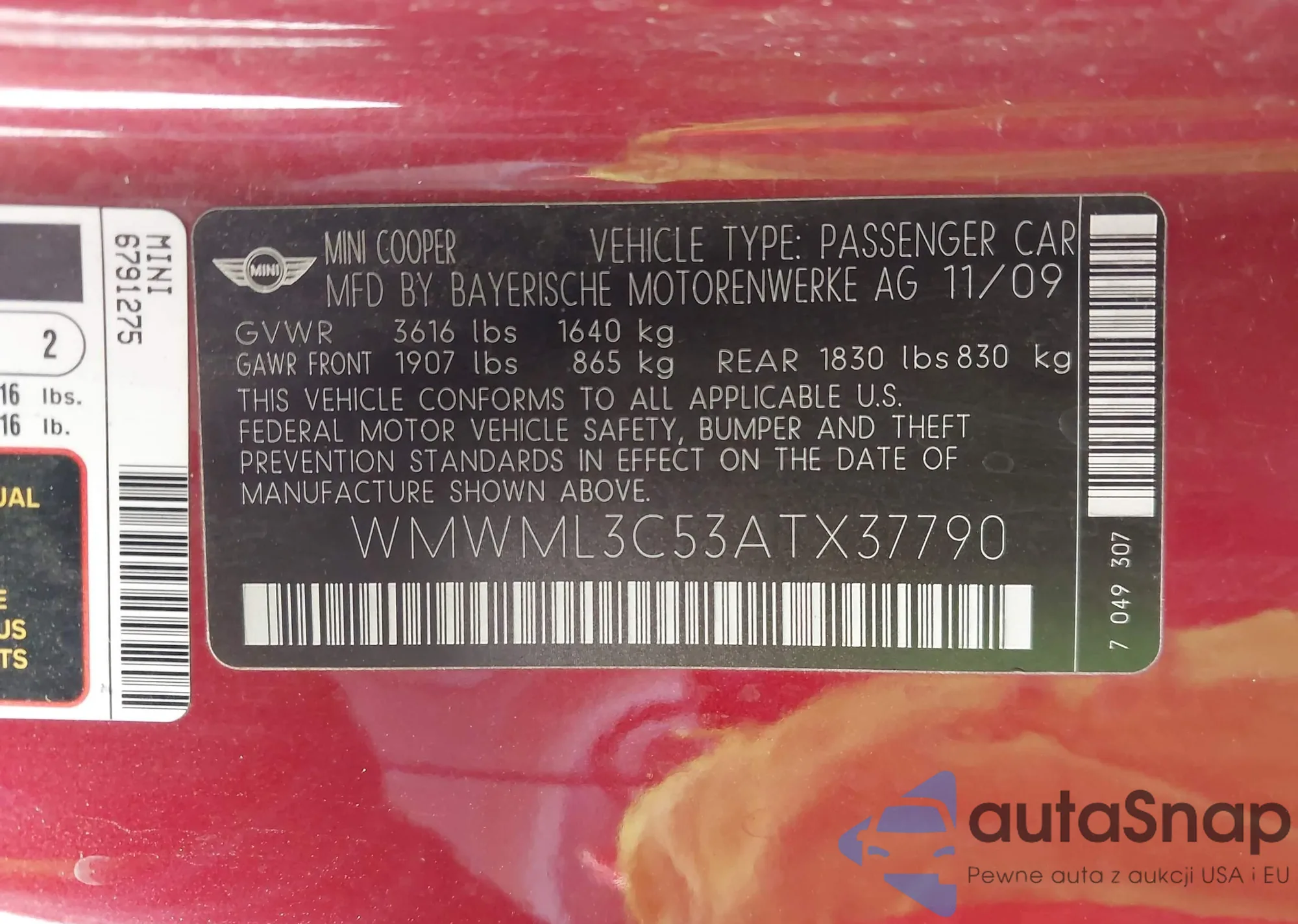 • VIN: WMWML3C53ATX37790