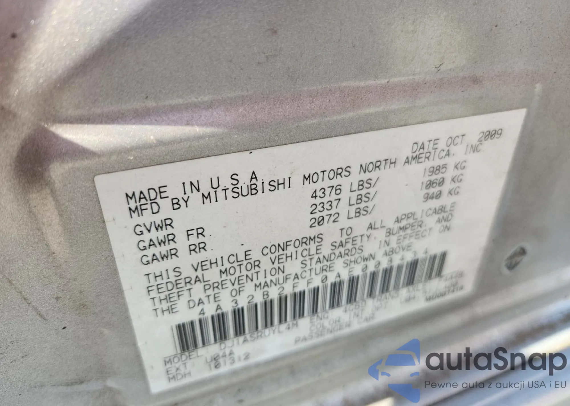 Samochód Mitsubishi Galant 2010 (VIN 4A32B2FF0AE008434) sprzedaje go niezweryfikowany sprzedawca. Zalecamy raport Carfax i potwierdzenie możliwości rejestracji pojazdu przed zakupem.