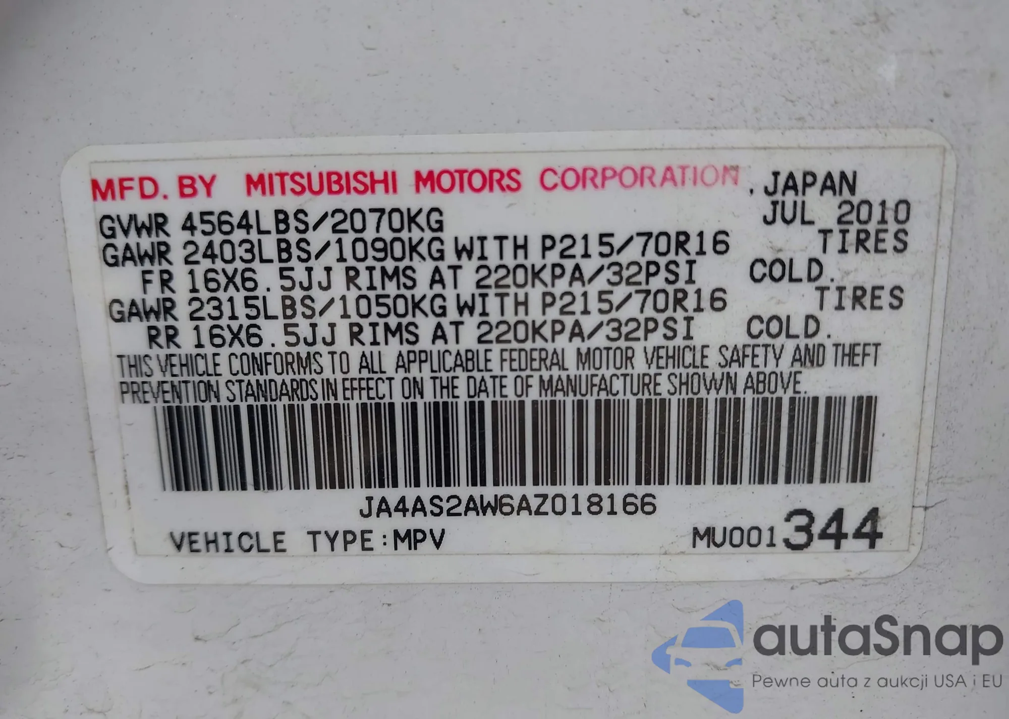VIN: JA4AS2AW6AZ018166
