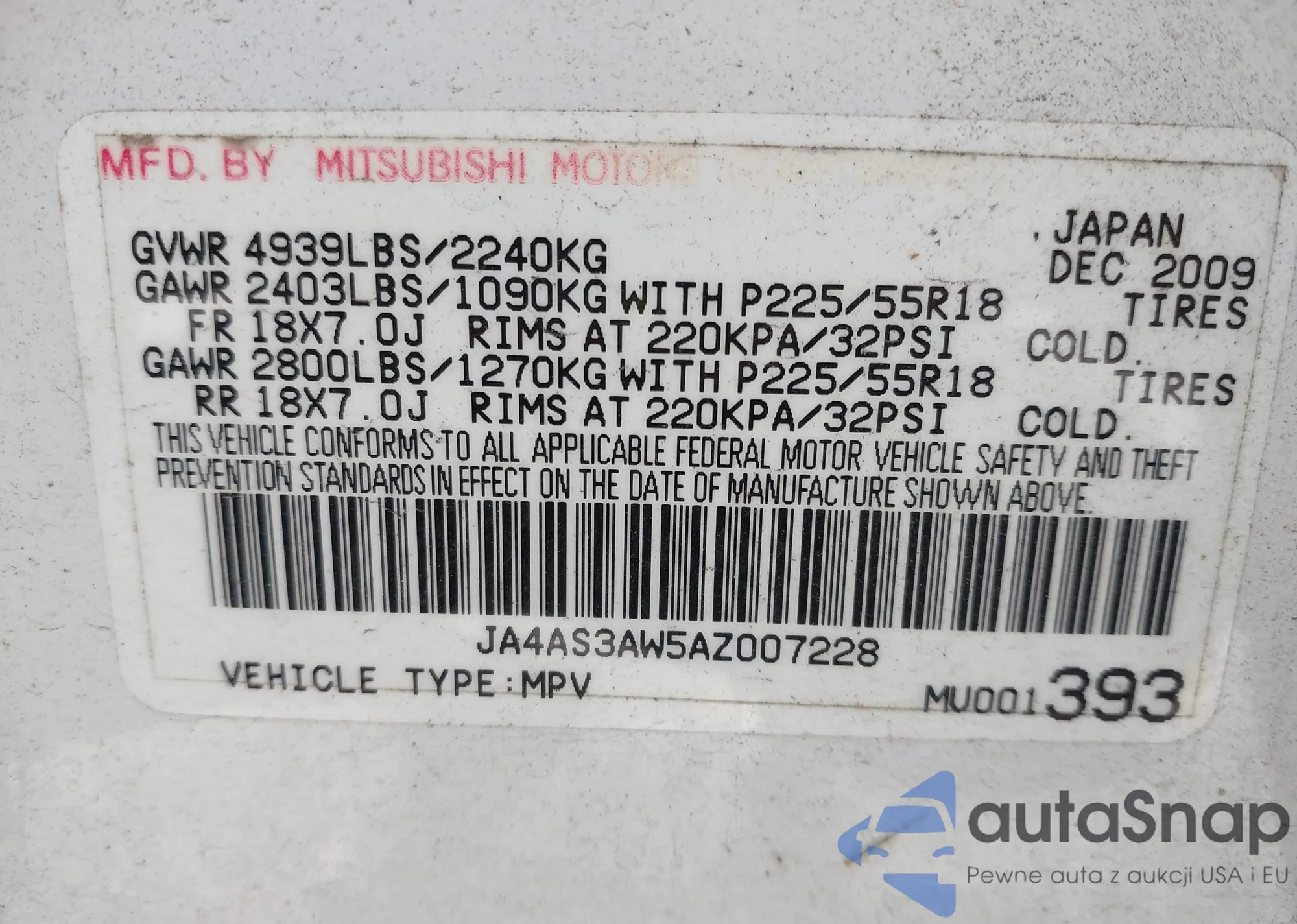 VIN: JA4AS3AW5AZ007228