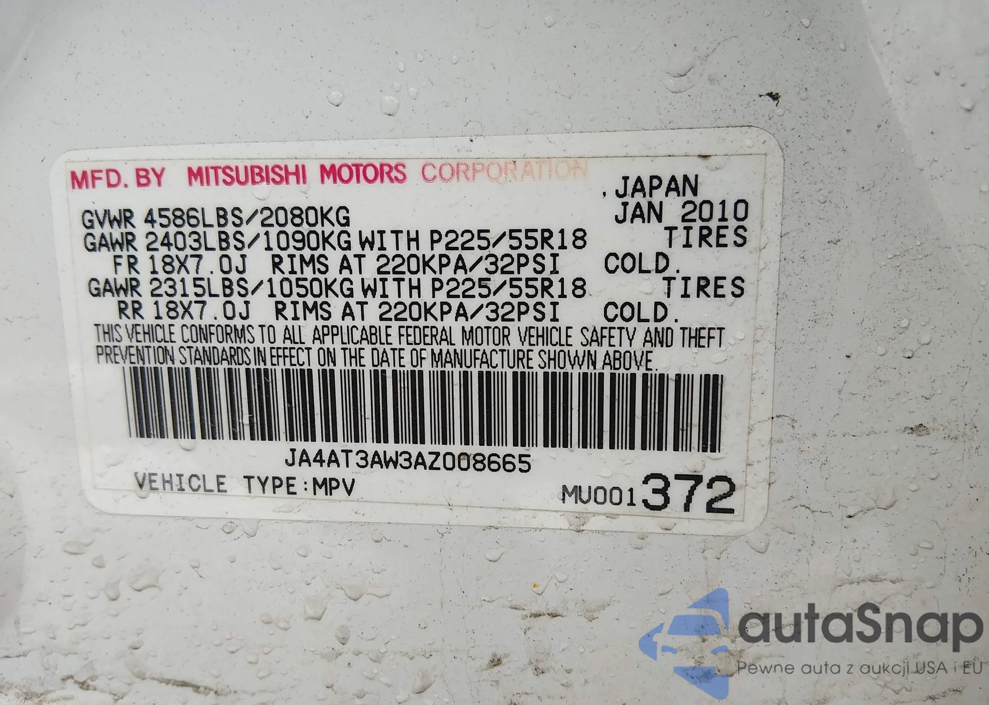 VIN: JA4AT3AW3AZ008665