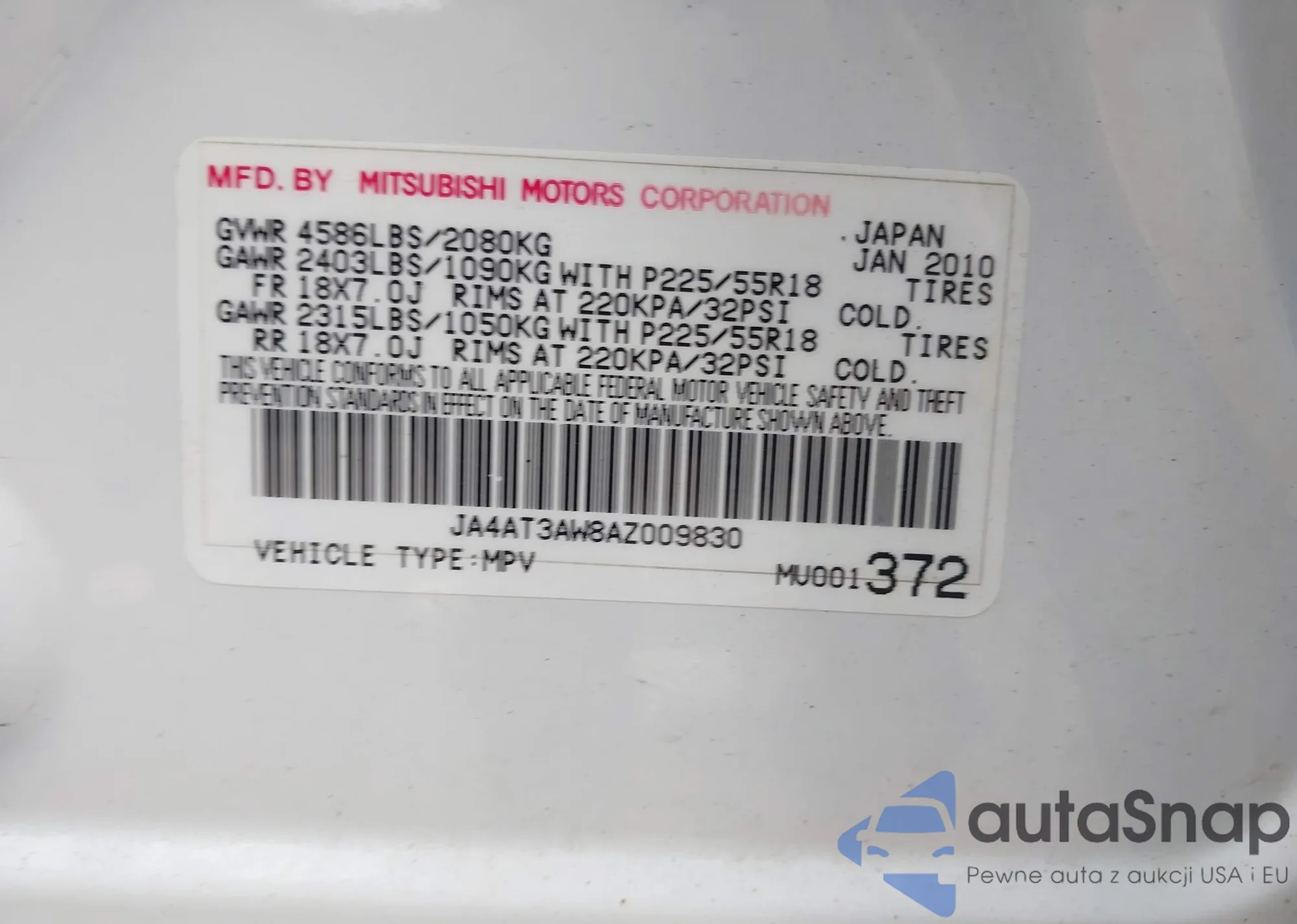 VIN: JA4AT3AW8AZ009830