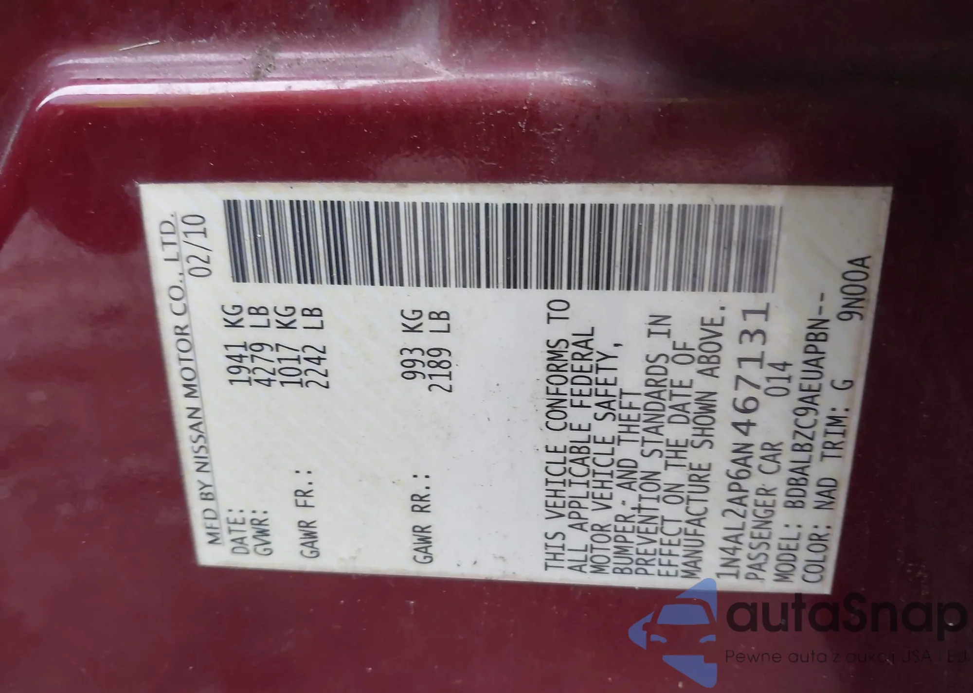 VIN: 1N4AL2AP6AN467131