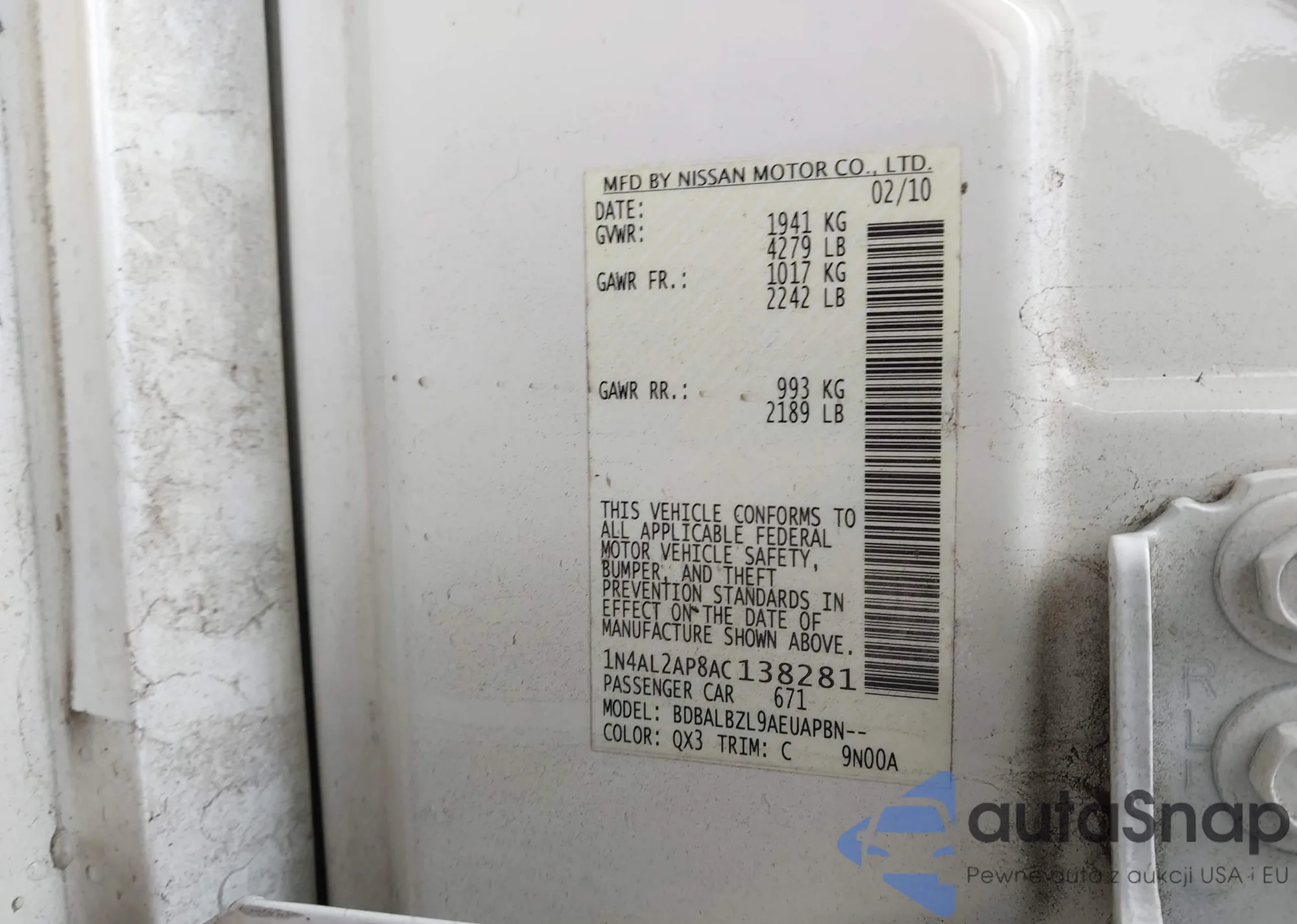 • VIN: 1N4AL2AP8AC138281