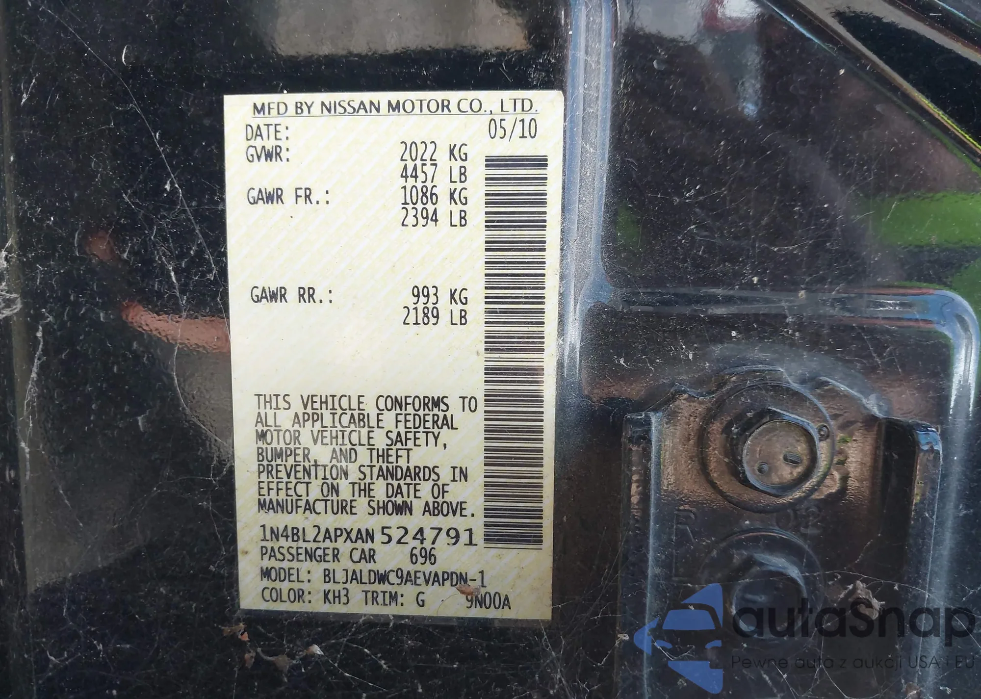 VIN: 1N4BL2APXAN524791