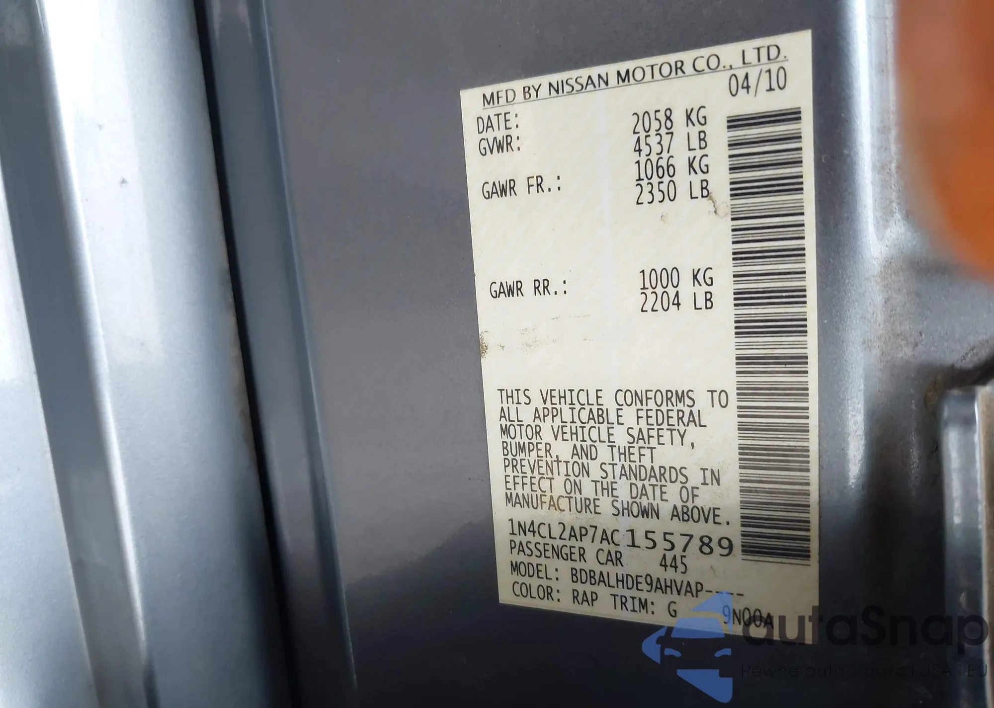 Samochód Nissan Altima 2010 (VIN 1N4CL2AP7AC155789) nie był wcześniej licytowany. Dokumenty są czyste, przebieg odpowiada lub jest niższy niż średnia rynku. Sprzedaje go firma ubezpieczeniowa – polecamy zakup. Dostawa do portu zajmie ok. 6–8 tygodni.