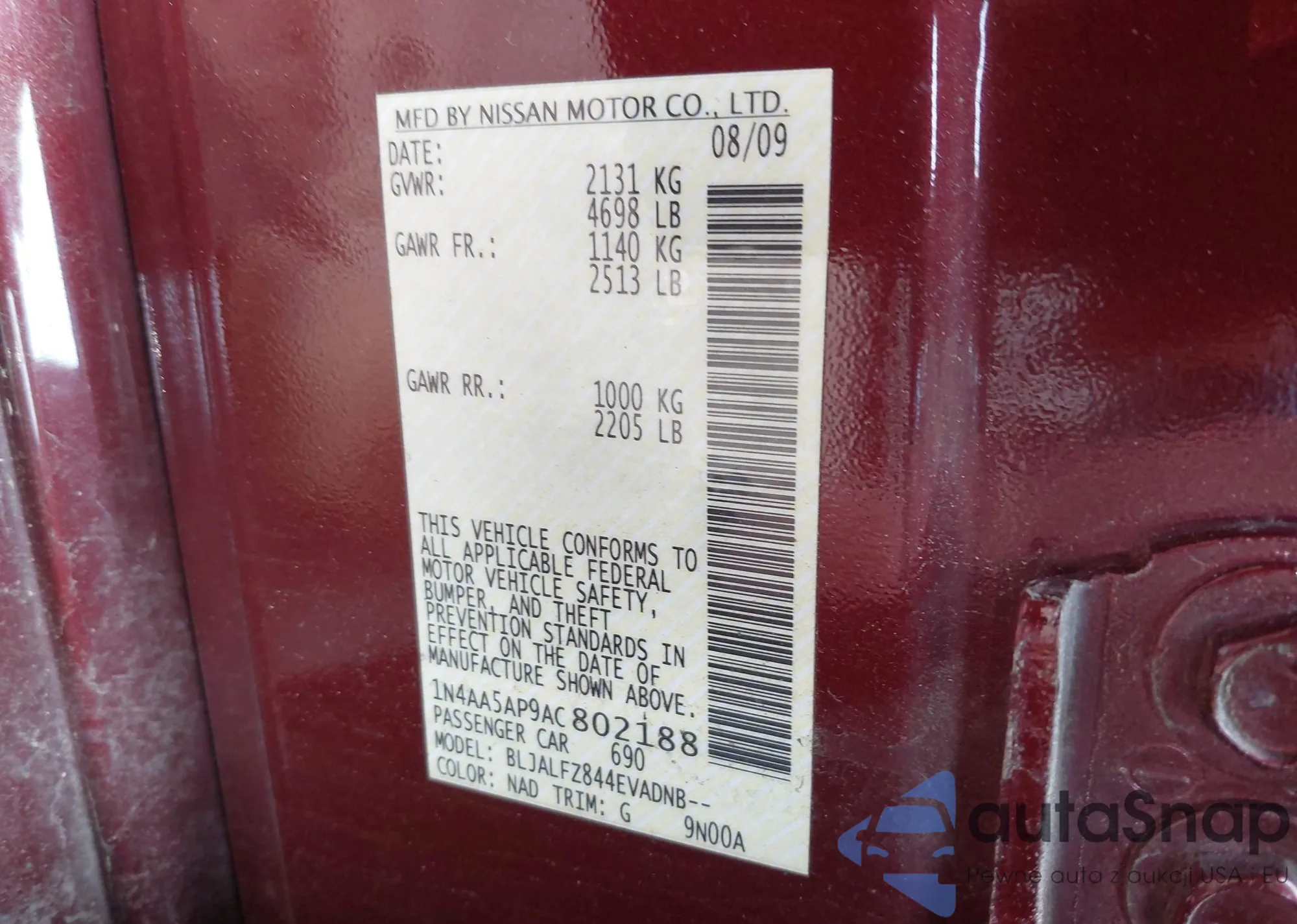 VIN: 1N4AA5AP9AC802188