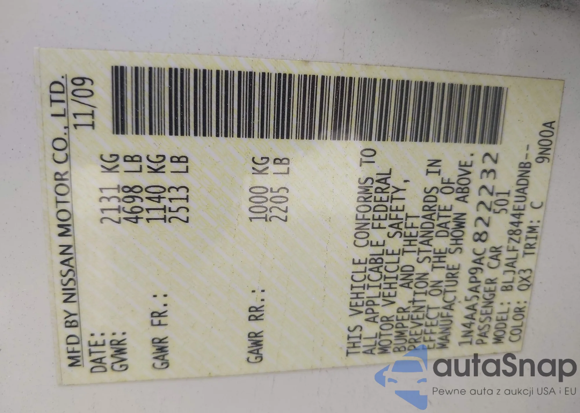 Samochód Nissan Maxima 2010 (VIN 1N4AA5AP9AC822232) nie był wcześniej licytowany. Dokumenty są czyste, przebieg odpowiada lub jest niższy niż średnia rynku. Sprzedaje go firma ubezpieczeniowa – polecamy zakup. Dostawa do portu zajmie ok. 6–8 tygodni.