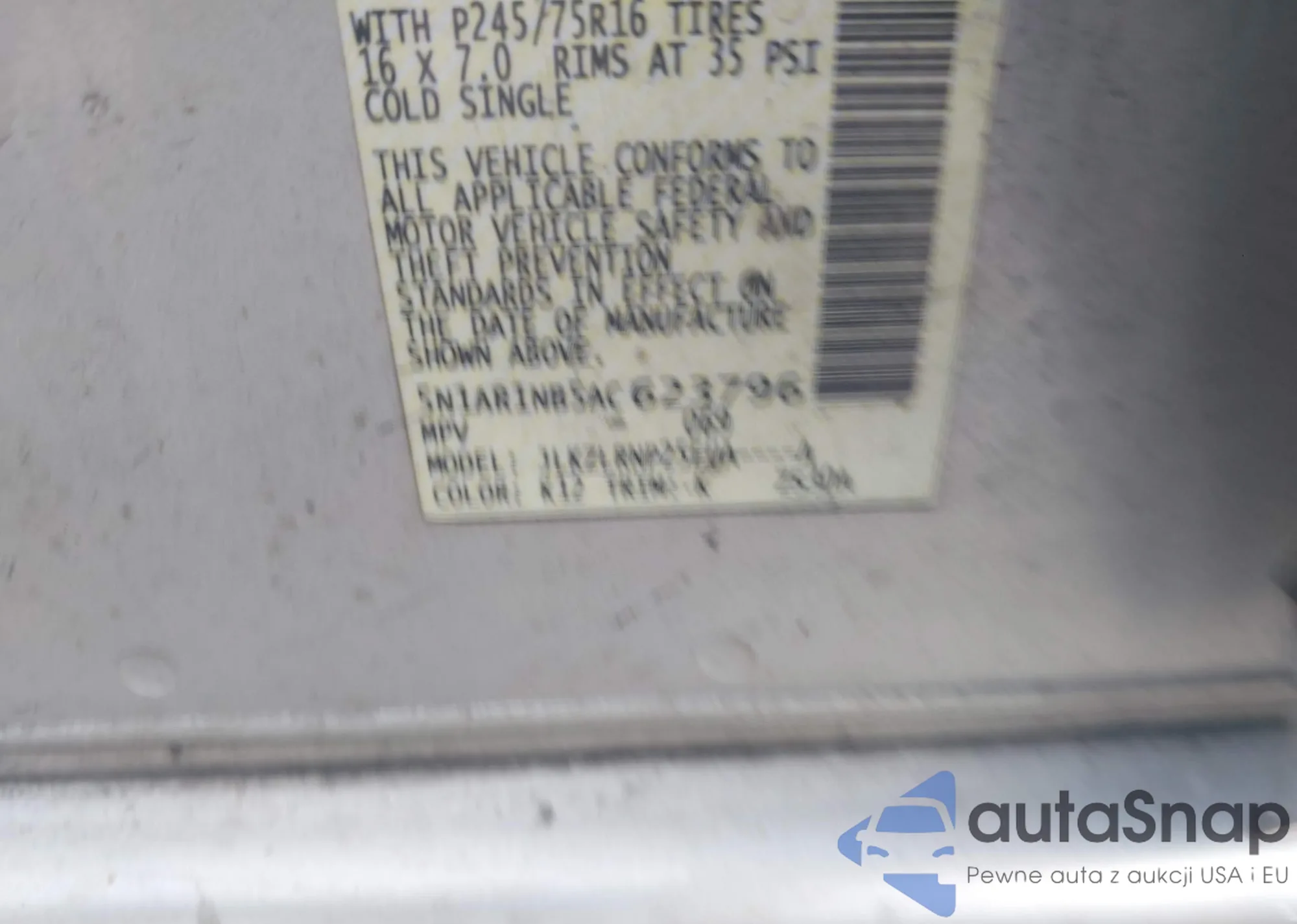 VIN: 5N1AR1NB5AC623796
