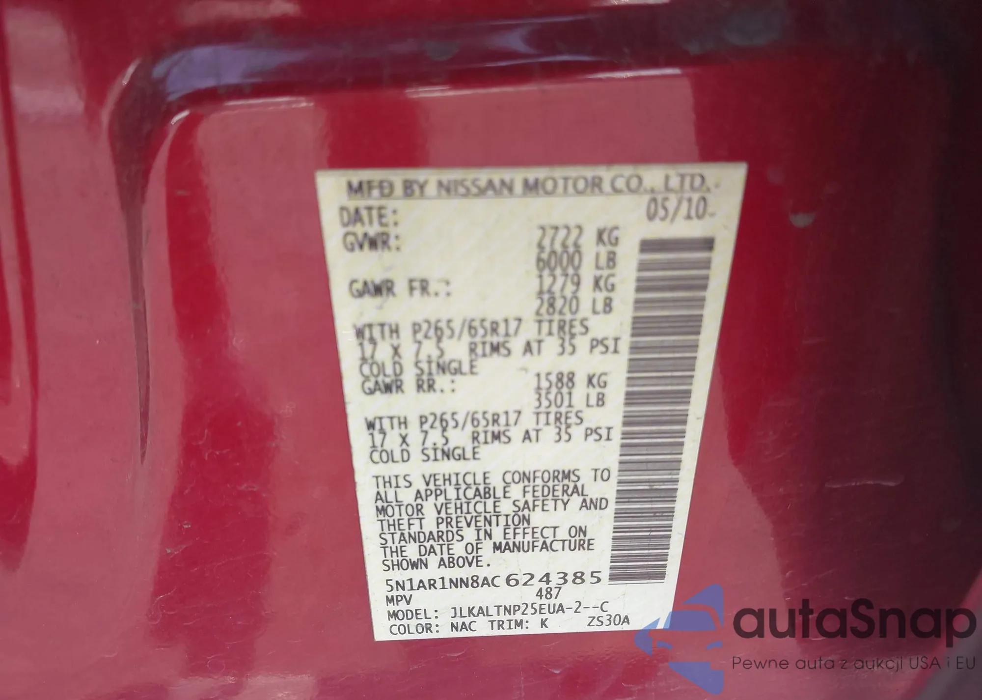 VIN: 5N1AR1NN8AC624385
