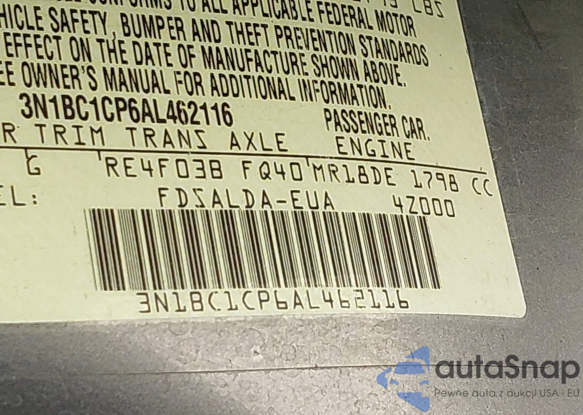 • VIN: 3N1BC1CP6AL462116