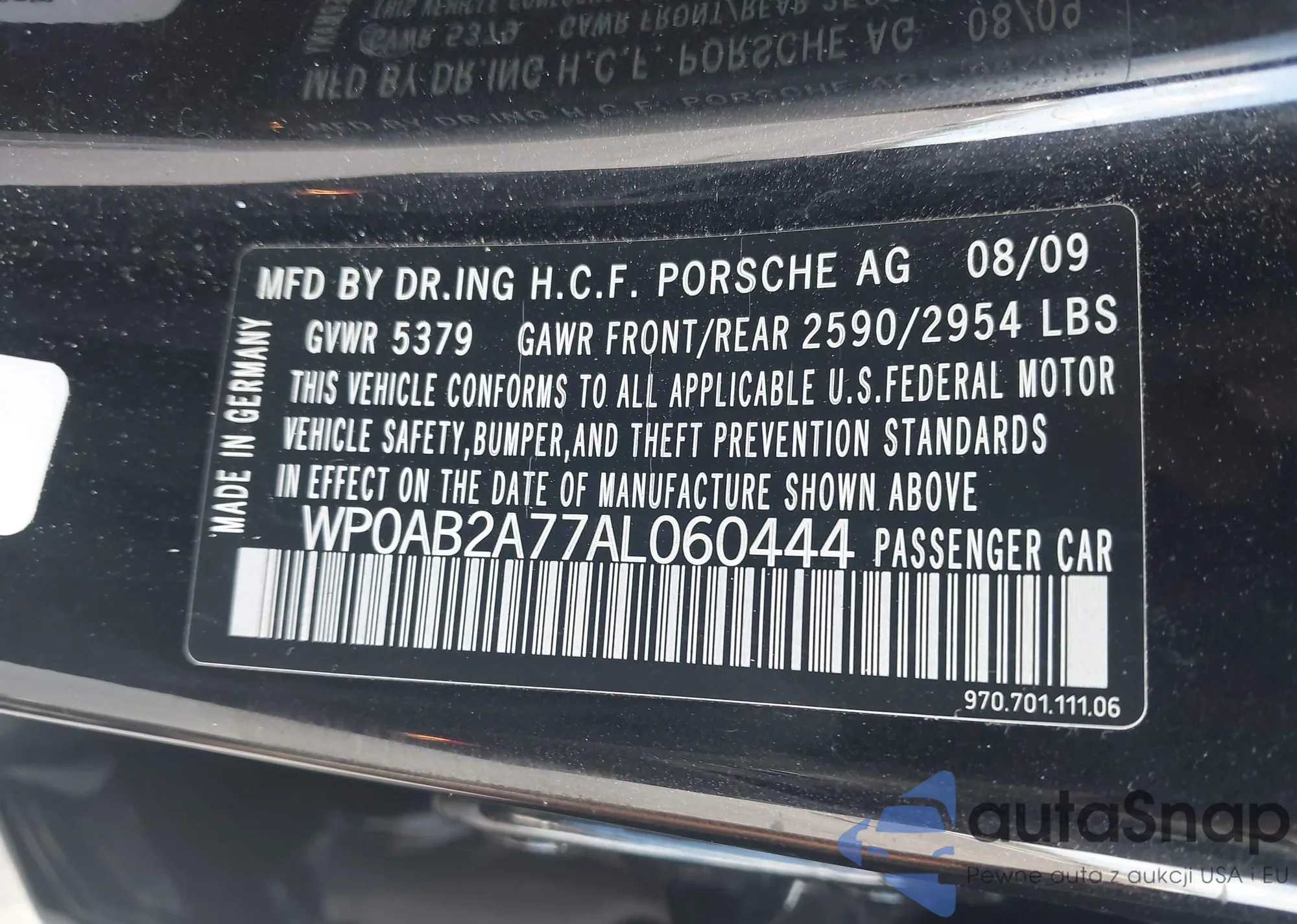 VIN: WP0AB2A77AL060444