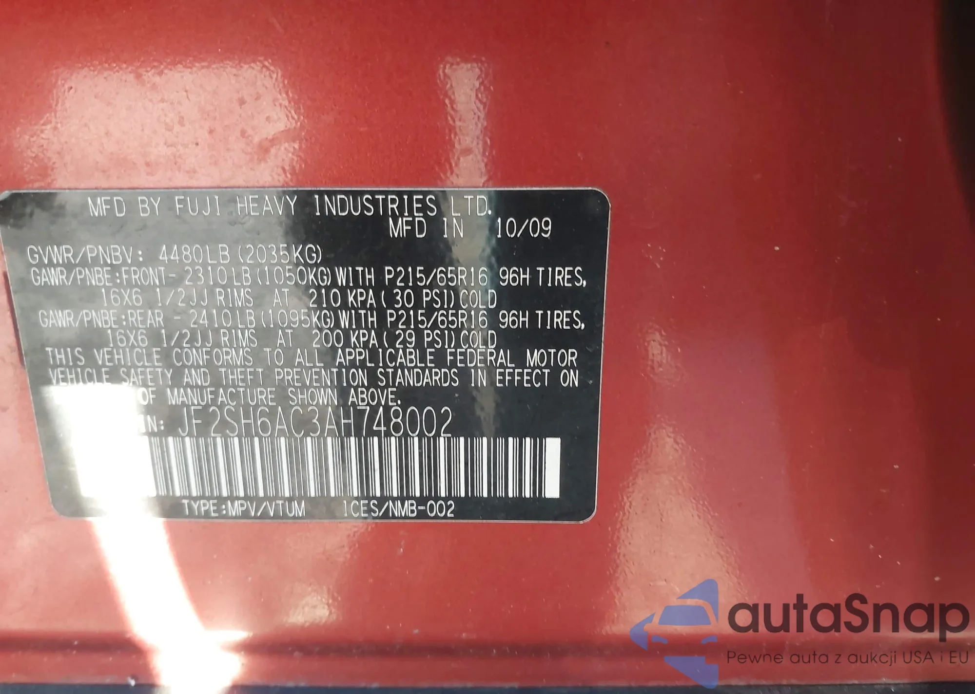 VIN: JF2SH6AC3AH748002
