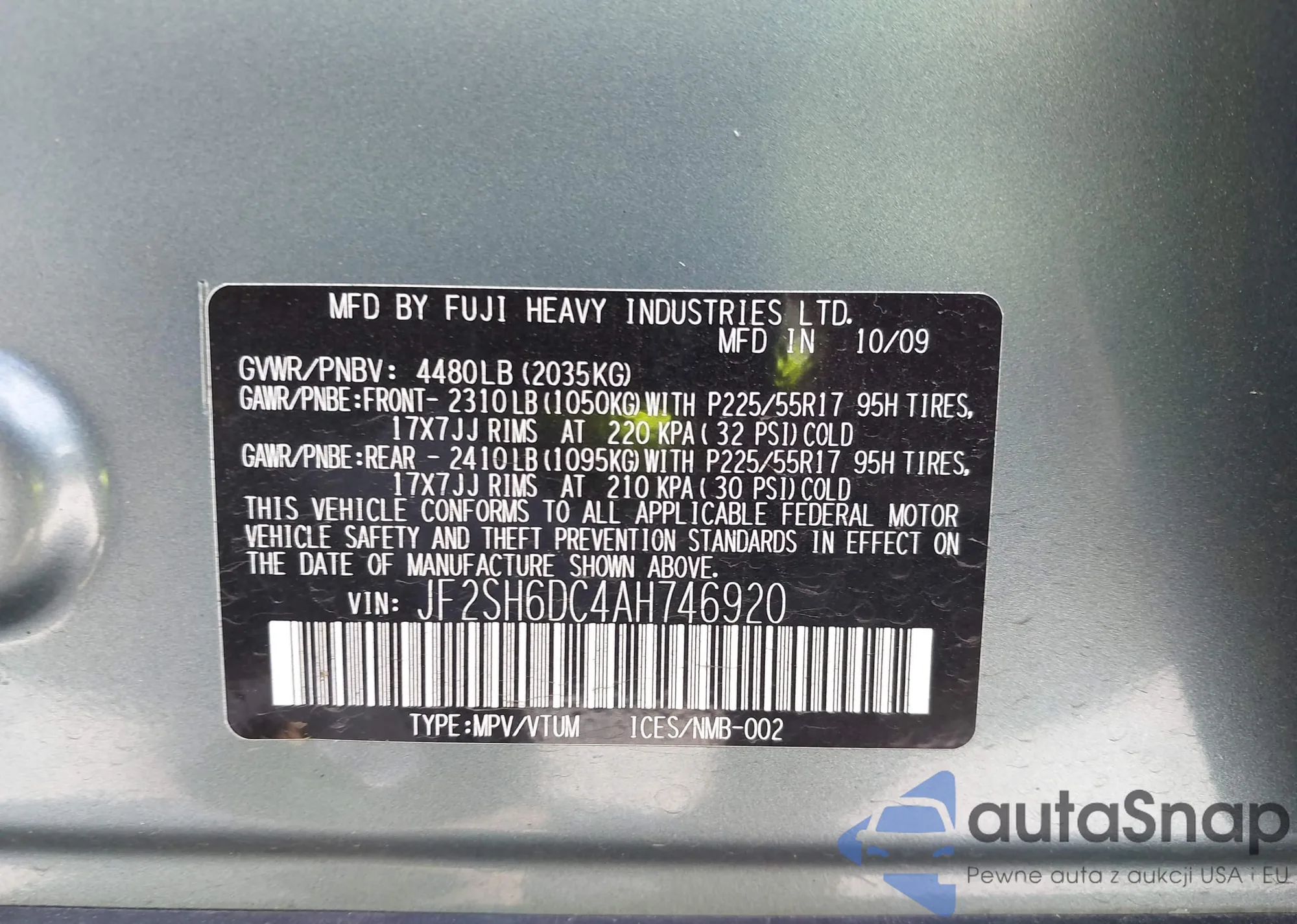 VIN: JF2SH6DC4AH746920
