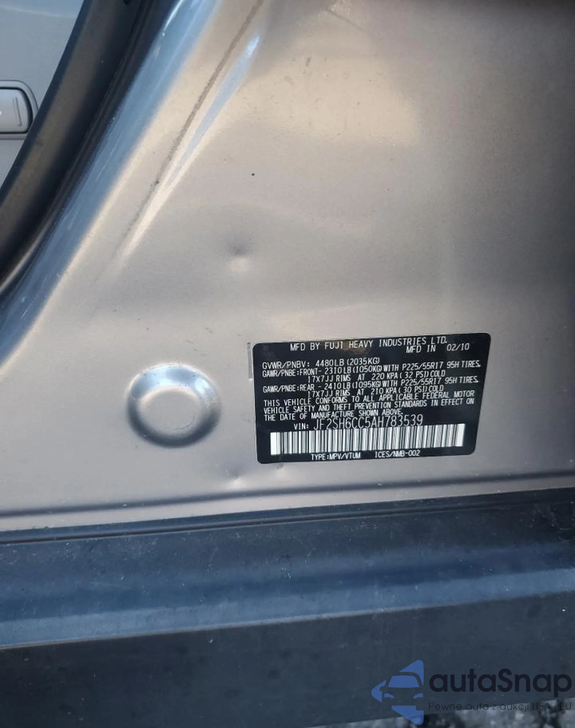 VIN: JF2SH6CC5AH783539