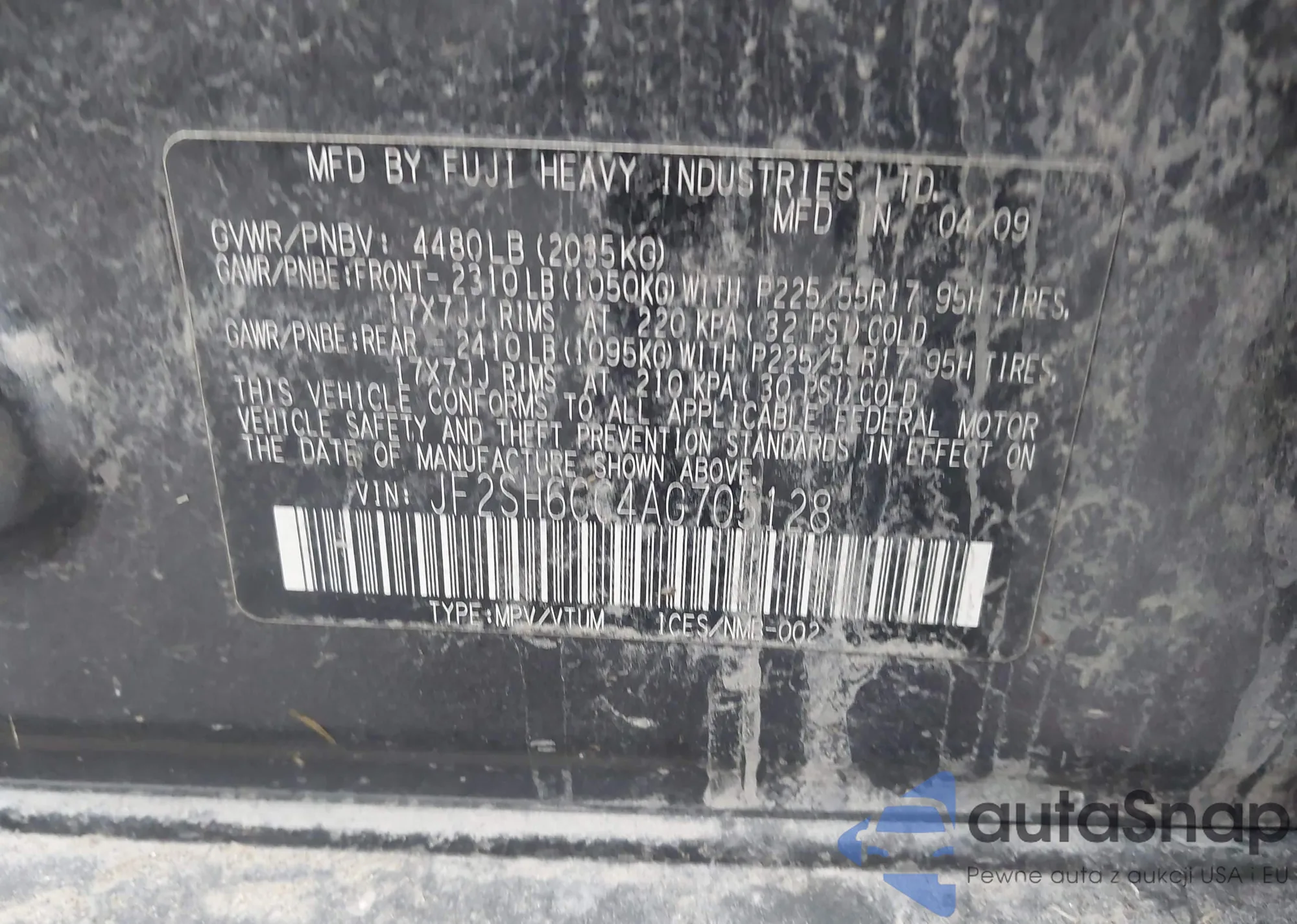 VIN: JF2SH6CC4AG705128