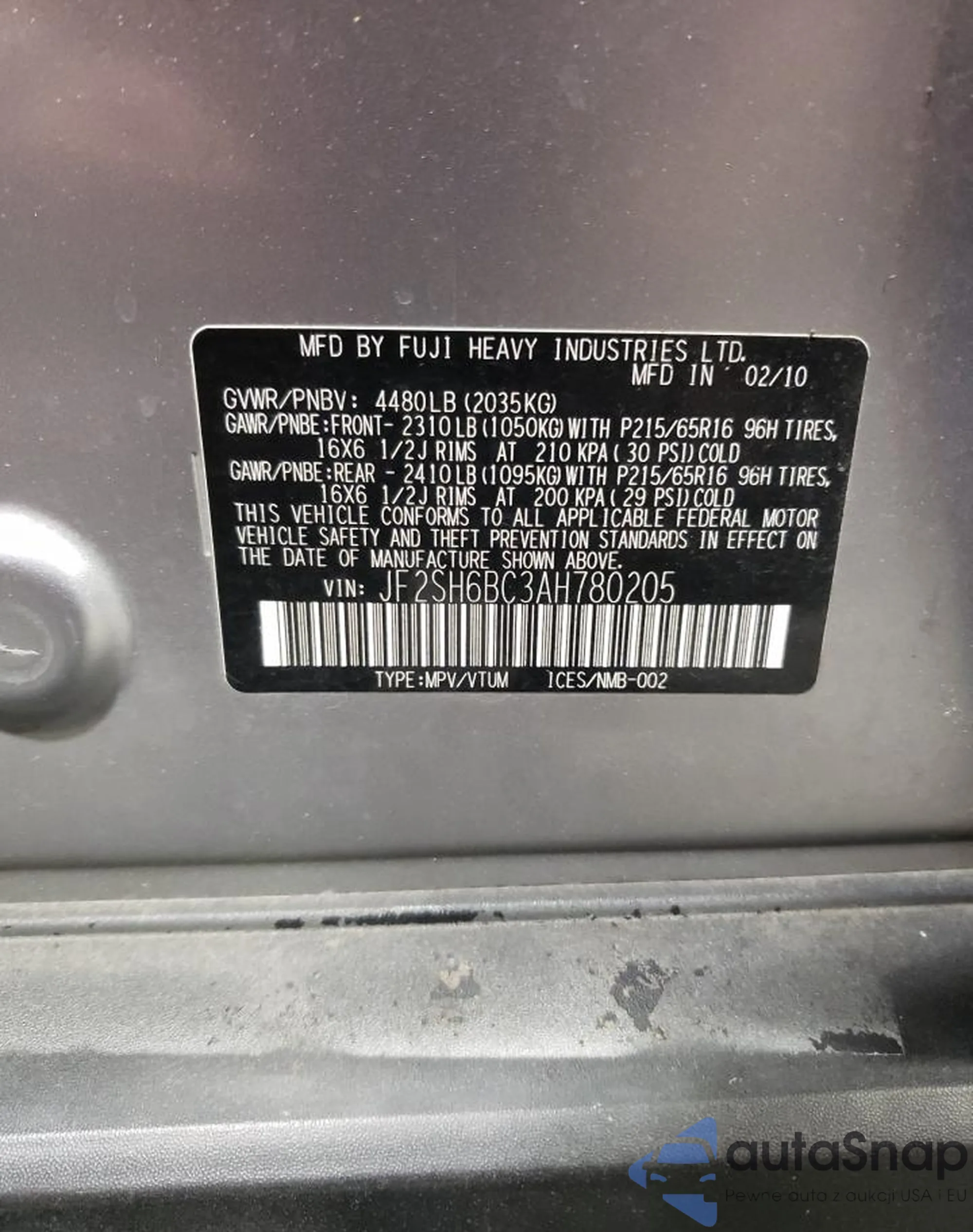 VIN: JF2SH6BC3AH780205