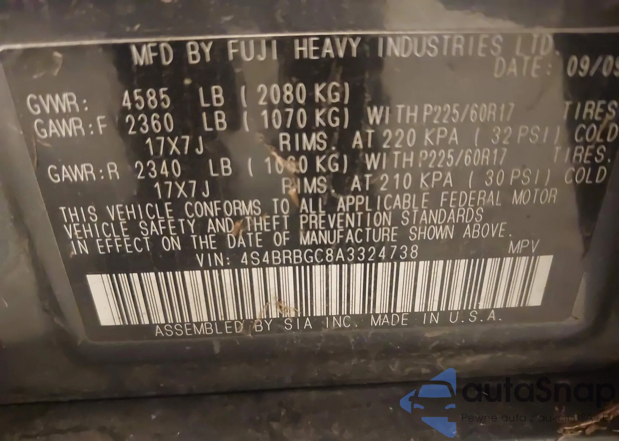 VIN: 4S4BRBGC8A3324738
