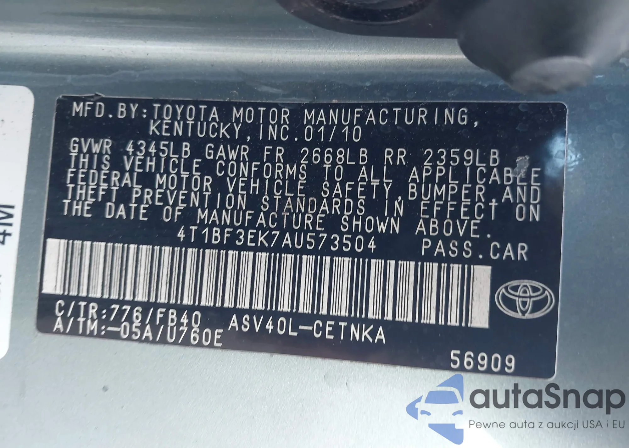 VIN: 4T1BF3EK7AU573504