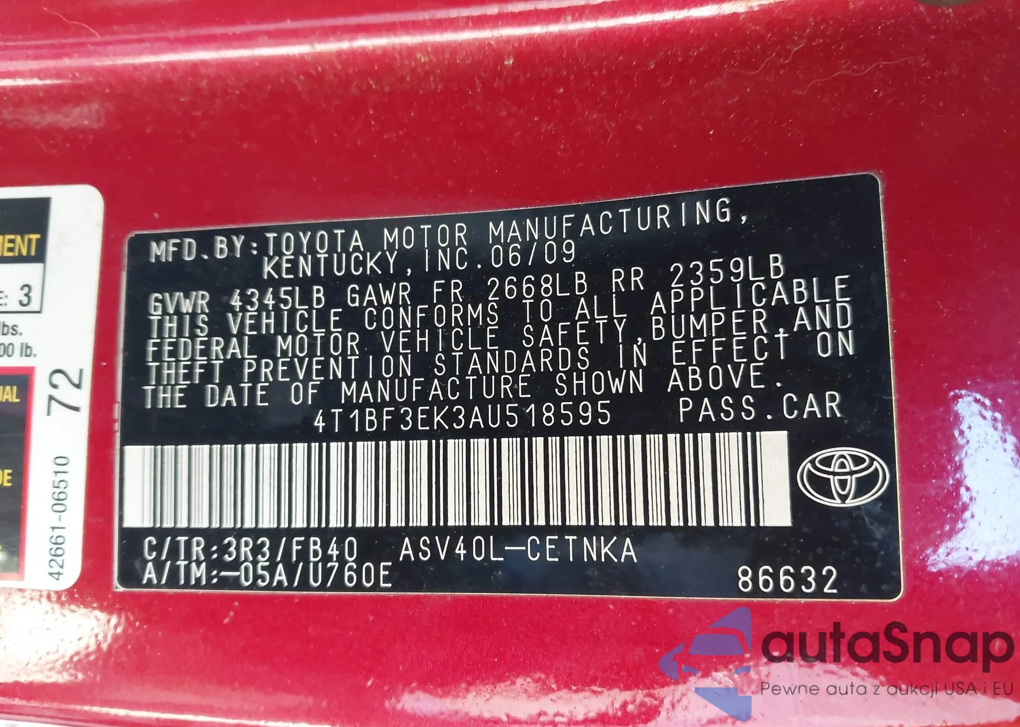 VIN: 4T1BF3EK3AU518595