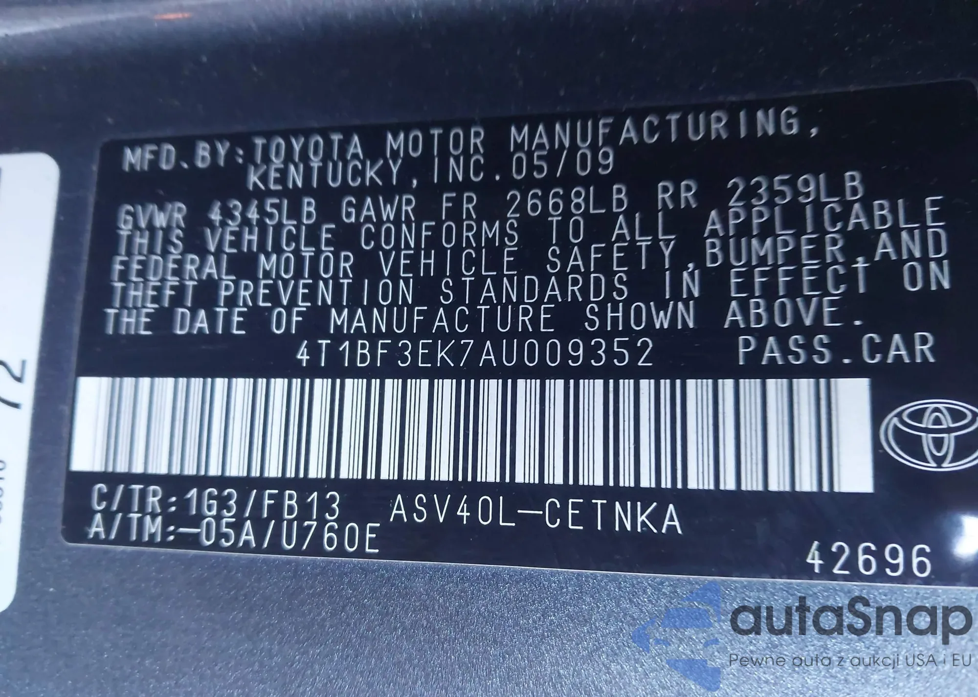 VIN: 4T1BF3EK7AU009352