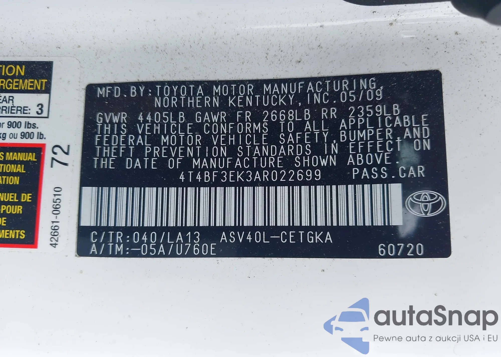 VIN: 4T4BF3EK3AR022699