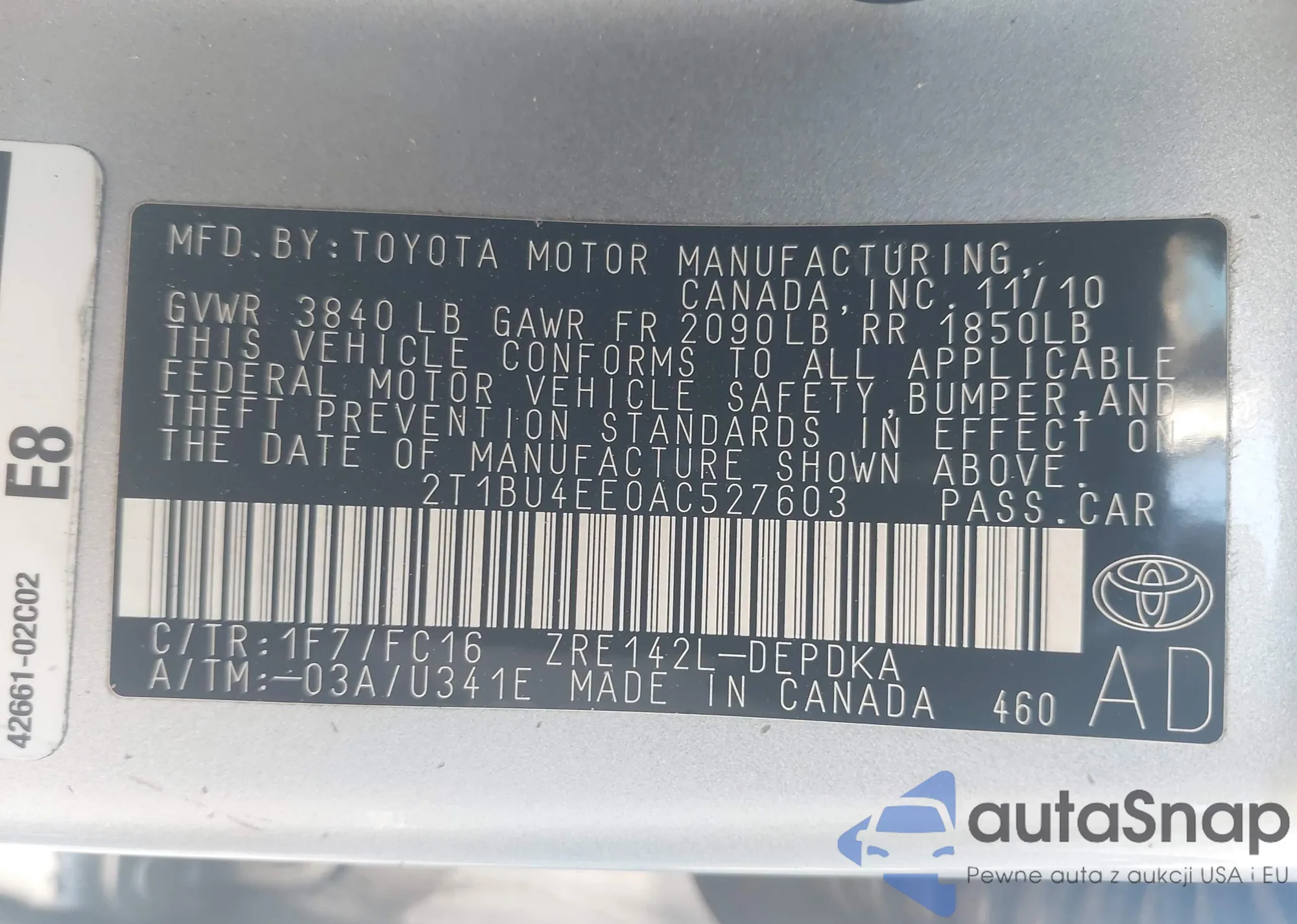 VIN: 2T1BU4EE0AC527603