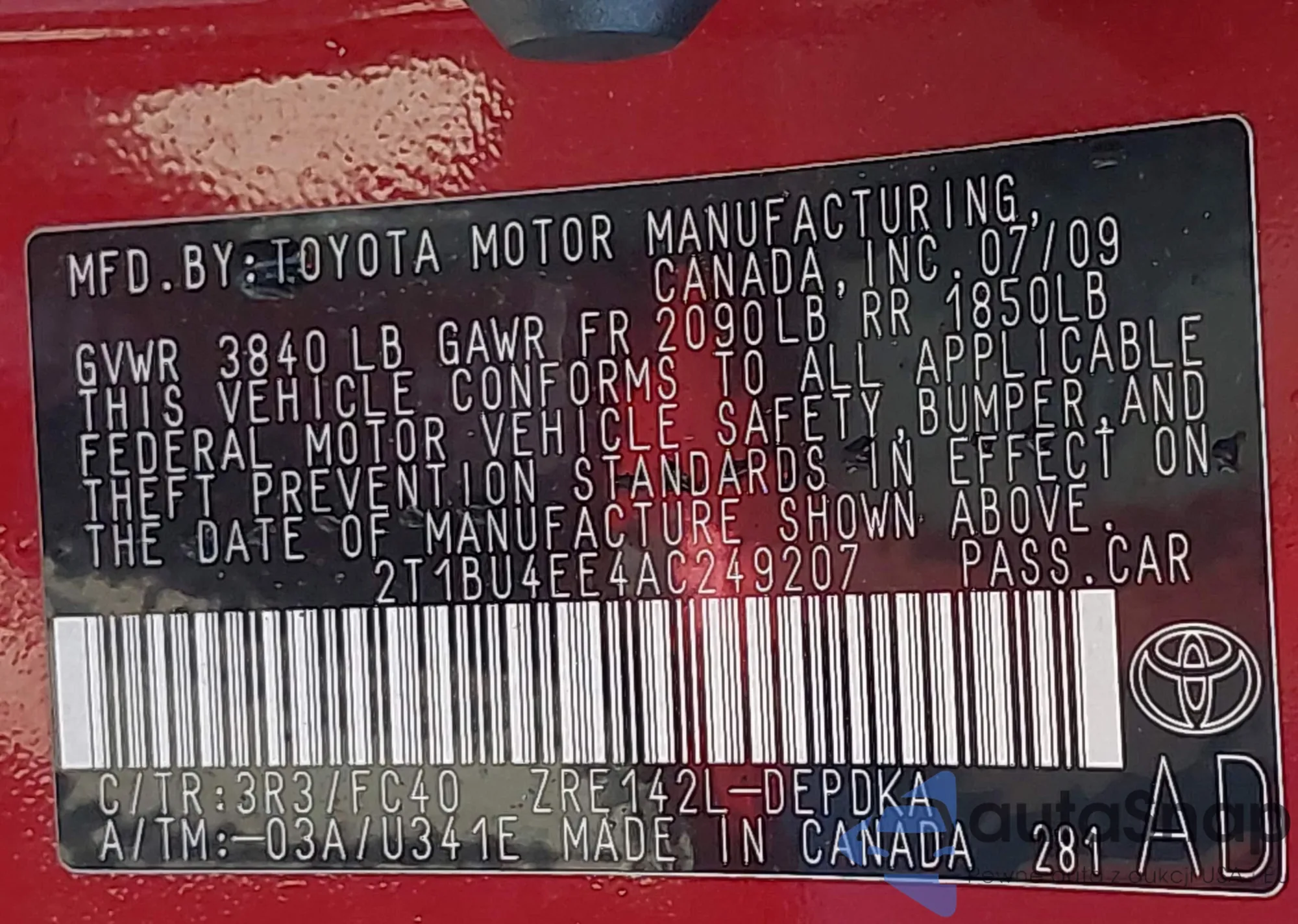 VIN: 2T1BU4EE4AC249207