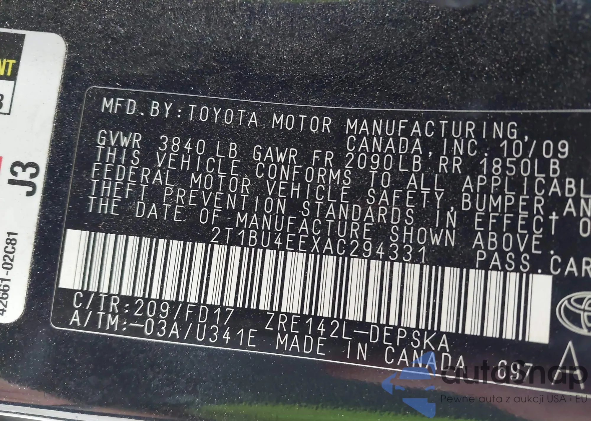 Toyota Corolla 2010 – Historia pojazdu (sprzedany na IAAI)